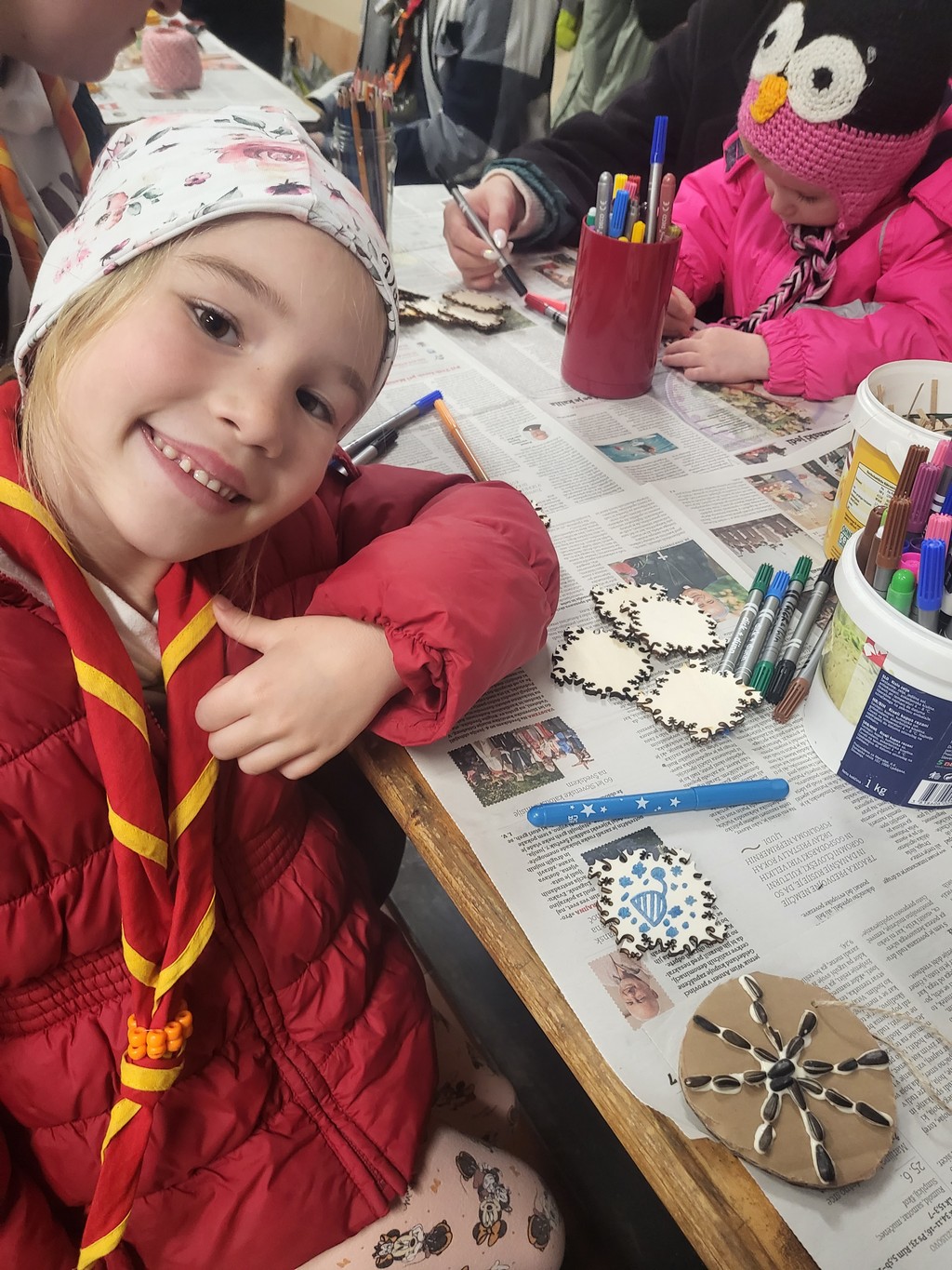 Po tradiciji že 15 let zapored pripravimo in izvedemo adventne delavnice. Pri tem nam pomaga Gasilsko društvo Škale, ki nam v ta namen odstopi garažne prostore. Letos smo jih izvedli v petek pred prvo adventno nedeljo, 1. 12. 2023. Kljub deževnemu vremenu je bila udeležba velika, tako mladine kot odraslih. Vsako leto sodeluje tudi taborniška četa Divji volk, ki po navodilih Klare Jan izdeluje okraske za novoletno jelko. Izdelali smo adventne venčke iz mahu, trte, smrekovih vejic in drugega zelenja in dodatkov v obliki okraskov ter svečk. In ravno zaradi naših delavnic je v nedeljo, 3. 12., v marsikateri hiši zagorela prva adventna svečka. Otroci pa bodo z okraski, ki so jih izdelali, okrasili novoletno drevo pred gasilskim domom na predpraznični prireditvi vseh društev v Škalah, ki bo v soboto, 16. 12.