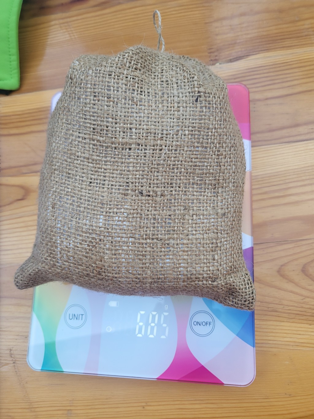 Obiskovalci so ugibali, koliko tehta vrečka ajdove kaše. Čisto za malo je pravo težo zgrešila Cvetka Lipnik in tako zmagala.