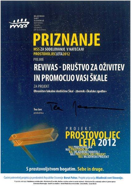 Podeljena so bila priznanja za sodelovanje vsem 187 prijavljenim posameznikom in 64 projektom, posebej pa še devet nazivov in dve posebni priznanji. Med projekti je bil tudi naš lanski največji projekt Ohranitev lokalne dediščine Škal - zbornik >Škalske zgodbe<.