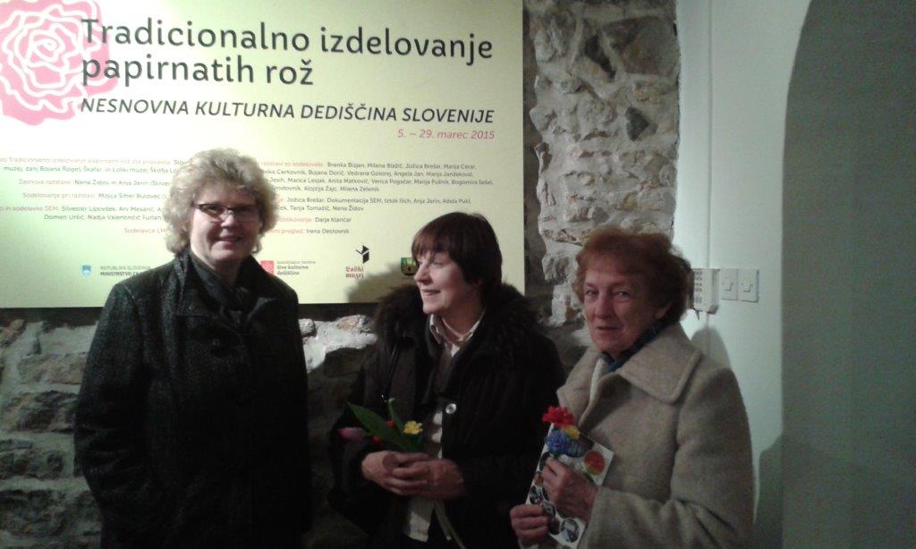 Razstava Tradicionalno izdelovanje papirnatih rož, ki je bila od lanskega septembra do 28. februarja letos na ogled v Slovenskem etnografskem muzeju, se je medtem preselila v Galerijo Ivana Groharja v Škofji Loki. Eksponate za to razstavo so prispevale tudi Hedvika Cerkovnik, Angela Jan, Milena Blažič, Jožica Brešar, Marija Pušnik in Mira Sevšek. Nekatere so se udeležile odprtja te razstave, 5. marca 2015. Razstava bo na ogled do 29. marca, torej tudi v času izvajanja Škofjeloškega pasijona, ki bo po pričakovanjih v središče Škofje Loke privabil na tisoče obiskovalcev iz domovine in tujine.