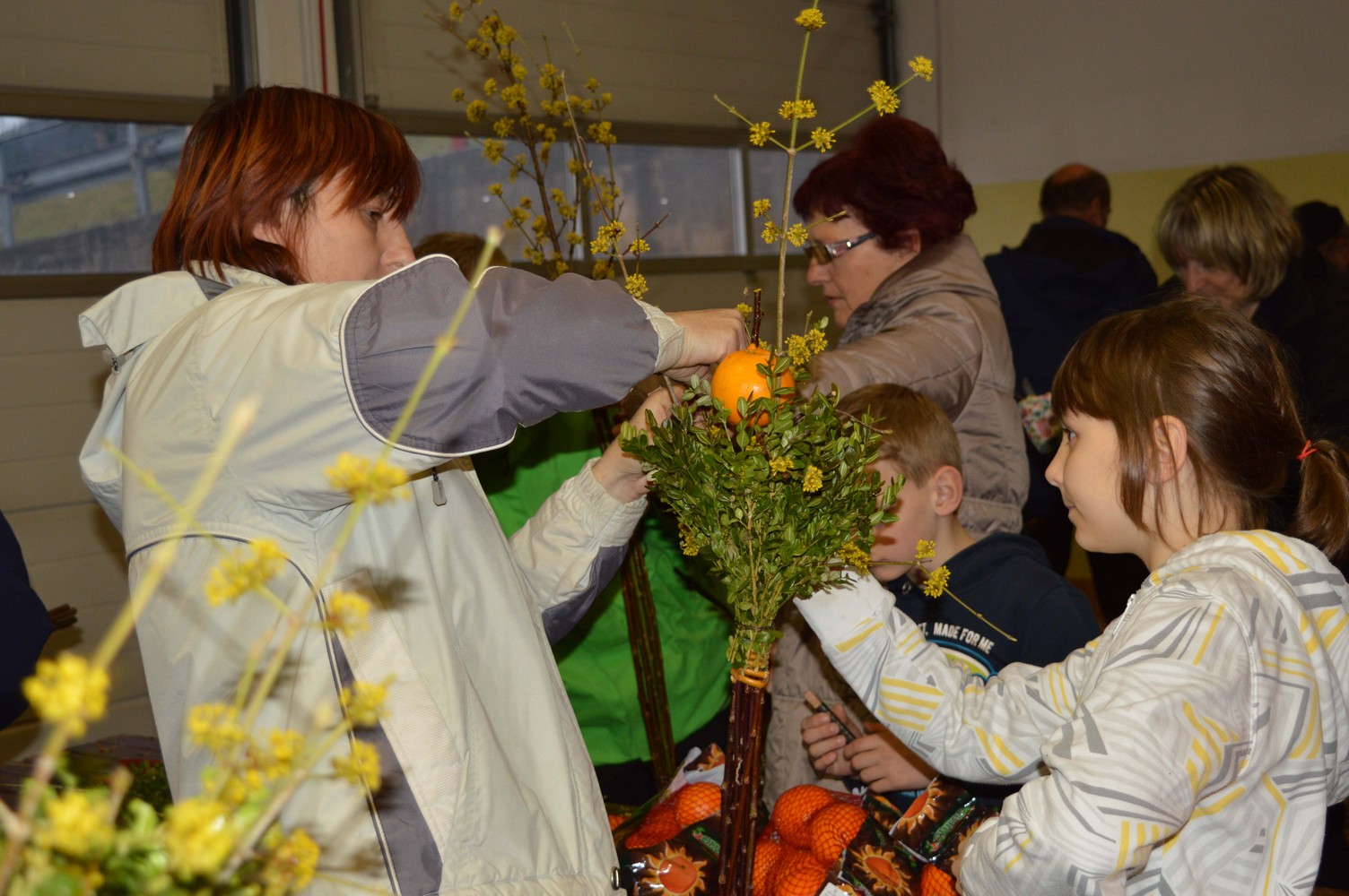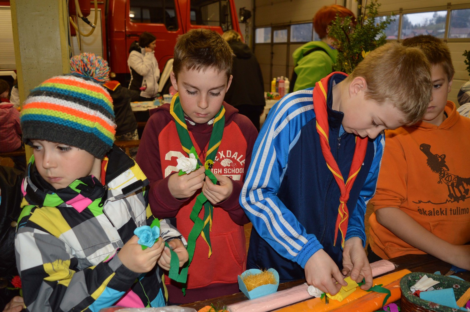 Šibe, zelenje, pomaranče, rože iz krep papirja in pisani trakovi ter seveda pirhi so pričarali prijetno predpraznično vzdušje, svoje pa je dodala še delovna vnema udeležencev. Nastalo je veliko lepih izdelkov. Snope so otroci na cvetno nedeljo prinesli k cerkvi, pirhe pa bodo zagotovo kmalu pojedli.