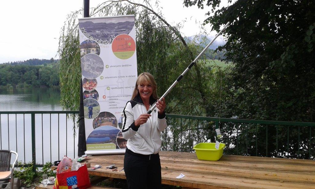 V sredo, 29. julija popoldne smo kljub neobetavni vremenski napovedi izvedli drugo letošnjo predstavitev domačih dobrot in izdelkov pri Ribiškem domu ob Škalskem jezeru. Na srečo se je dež za nekaj ur preselil drugam, popoldne pa so številni Velenjčani in turisti izkoristili za sprehod ob jezeru. Marsikateri se je tudi ustavil pri Ribiškem domu, kjer so za živahno dogajanje poskrbeli ponudniki, izdelovalke rož iz krep papirja ter člani društva in naši mladi turisti z igrami in animacijami za otroke in odrasle. Obiskovalci so si lahko s pravilnim odgovorom na vprašanja o Škalskem jezeru, ribah, najdbah mastodonta in nekdanji škalski cerkvi prislužili sladko nagrado. Otroci in odrasli pa so se najbolj zabavali pri lovljenju prav posebnih rib. Ribiške karte za ta ribolov so bile zastonj.