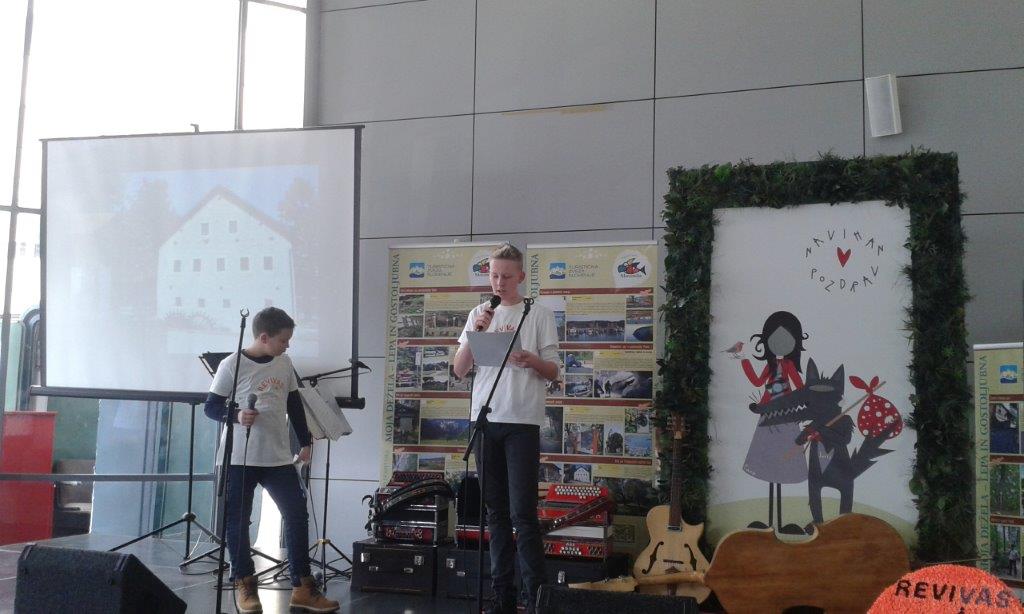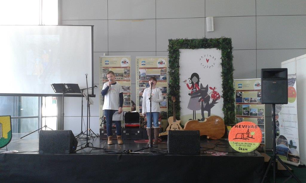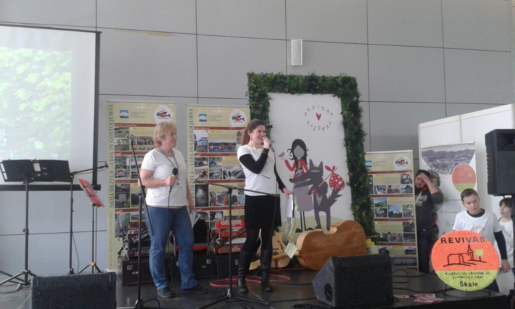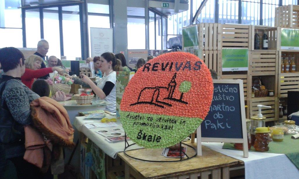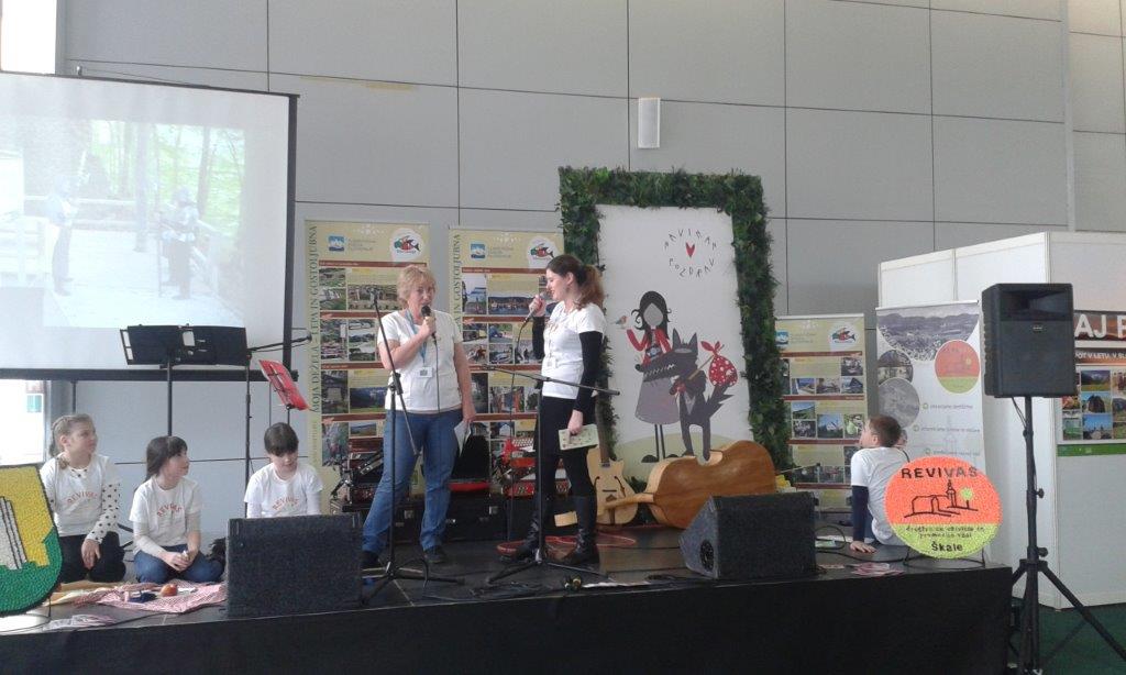 V soboto, 4. februarja, pa so člani društva REVIVAS, večinoma mladi turisti, na tem odru poskrbeli še za prisrčno in zanimivo predstavitev našega kraja in dejavnosti društva, ki so jo popestrili z glasbenimi vložki. Informacije o kraju in društvu sta podala Jure in Tjaž. Deklico Fano, volkca Jurija in zemljevid sta predstavili njihova avtorica Ana Glinšek in Eva Kumer, mlade turistke Neja, Tinkara in Tjaša pa so pri tem z veseljem demonstrirale in razložile vsebino in uporabnost culic. Ana in Eva sta še povabili obiskovalce na odkrivanje zanimivosti in doživetja v okolici Škalskega jezera ter napovedali še več podobnih produktov z doživetji v naravi, ki jih bomo pripravili z mladimi turist.