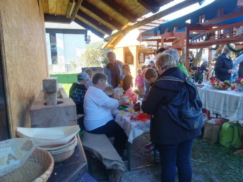 Z razstavo pridelkov in žit se je društvo REVIVAS Škale predstavilo še v soboto, 7. oktobra, dopoldne na mestni tržnici Velenje. Razstavo, ki jo je postavila Klara Jan, so dopolnili še recepti za jedi iz žit ter igra POVEŽI SEMENA IN IMENA. Slednja je požela že veliko zanimanja na predstavitvi na Pikinem festivalu, 23. septembra, in podobno je bilo tudi tokrat. Enako velja za predstavitev spravila prosa, ki jo je prikazal Ivan Krenker. Milena Blažič je obiskovalcem pokazala, kako se dela cekar iz ličkanja. Predstavila se je sekcija izdelovalk rož iz krep papirja in lokalni ponudniki, vinogradništvo Branko in Elica Rednak, Strževa domačija in kmetija EKO Mlinar. Za popestritev programa sta poskrbeli mladi turistki Saška Miklavžina in Natalia Jakop.