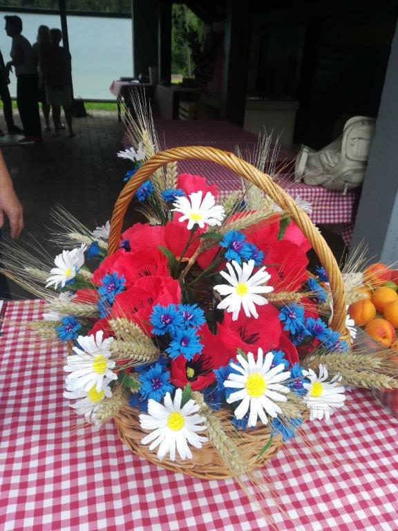 Popoldne je minilo v zares prijetnem vzdušju, h kateremu je dodatno pripomogel še slasten ričet, za katerega je poskrbel Zvone Kodrun. Ričet smo postregli v unikatnih emajliranih skledicah. Skledice so za spomin prejeli tudi vsi preseljeni Škalčani- poleg obveznih nageljčkov, ki so jih izdelale članice sekcije izdelovalk rož iz krep papirja.