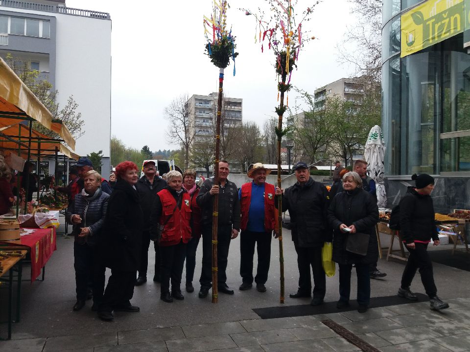 V soboto, 13. aprila, smo se s snopi in rožami iz krep papirja predstavili še na velikonočni tržnici v Velenju, skupaj s turističnima društvoma Vinska Gora in Šentilj. Dopoldne je bilo mrzlo, precej vroče pa je postalo, ko je bilo treba izbrati najdaljši snop. Šentiljčani so nas sicer premagali, a razlika je bila res majhna.