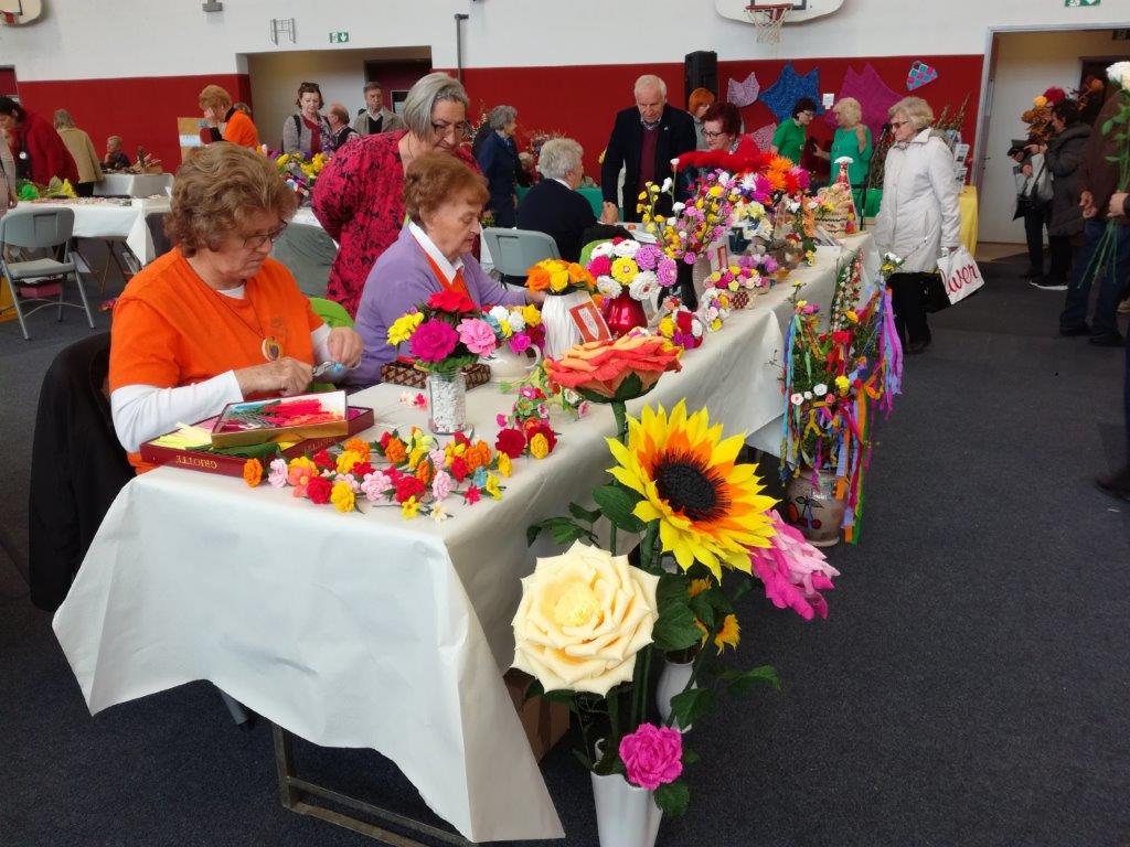 Istega dne, 13. aprila, so se članice naše sekcije izdelovalk rož iz krep papirja predstavile na Pragerskem, kjer je v organizaciji tamkajšnjega turističnega društva Breza potekala razstava Cvetje, ki ne ovene. Uživale so v družbi ostalih izdelovalk, marsikatera pa jim je tudi prišla gledat pod prste.