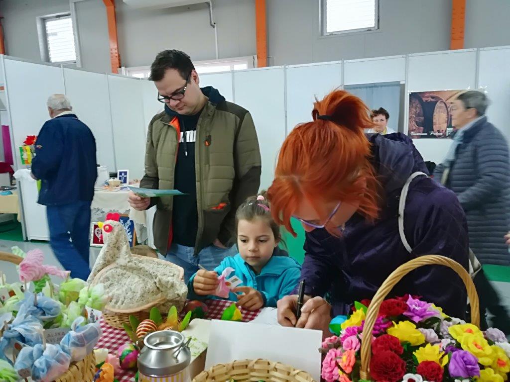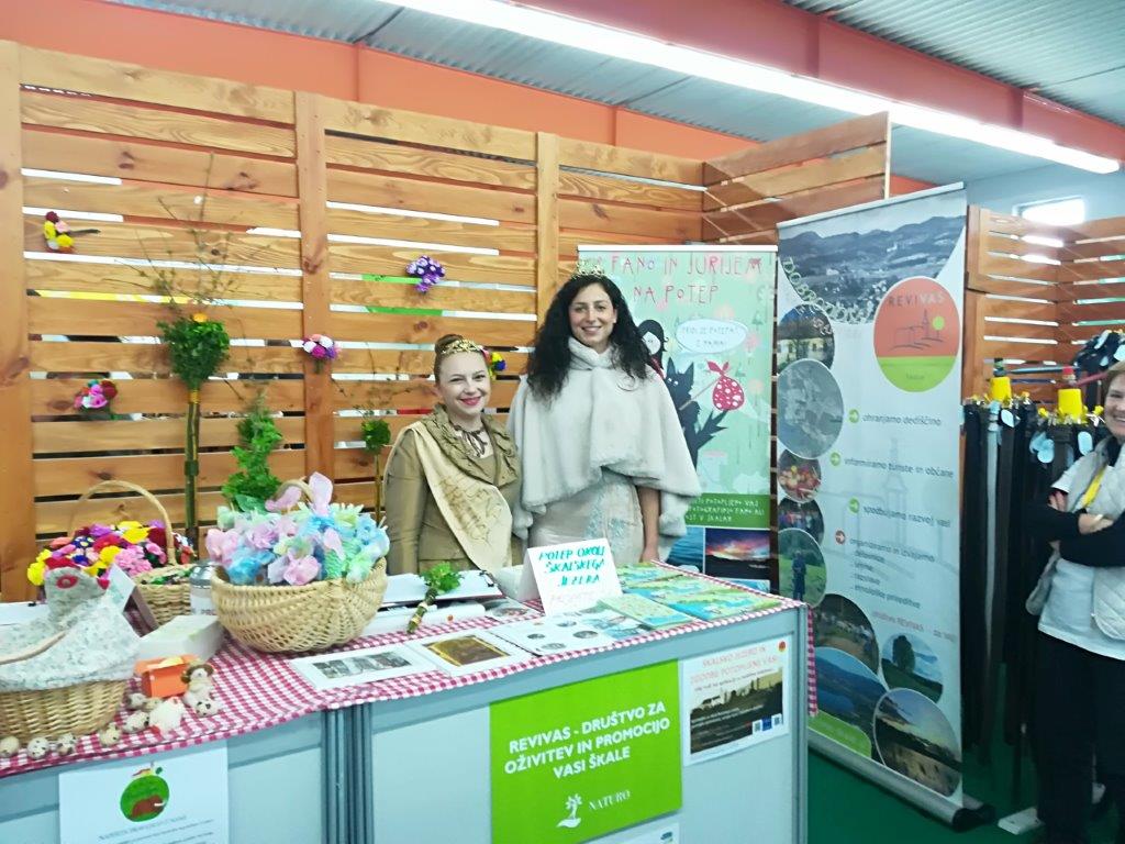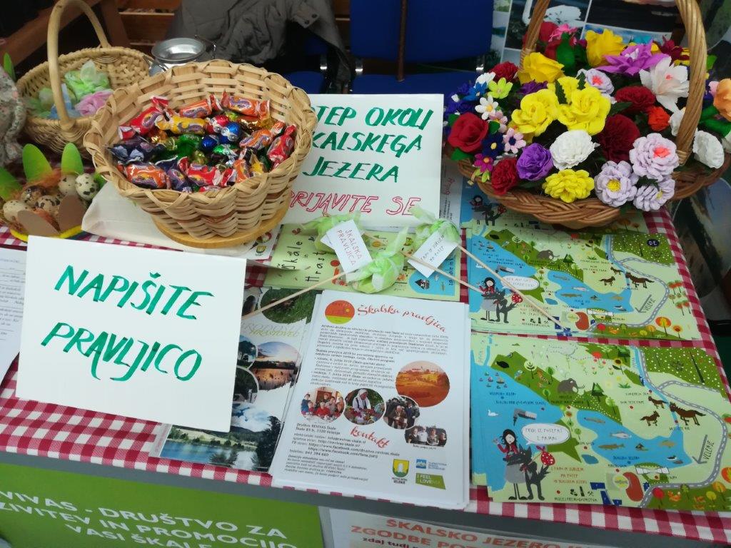 Na sejmu NATURO, sejmu zelenega turizma in oddiha v naravi, ki je potekal v Gornji Radgoni med 12. in 14. aprilom, smo se predstavljali vse tri dni. Prazničnemu času primerno so stojnico krasili naši snopi in rože iz krep papirja. Poleg predstavljanja potepov in vodenj okoli Škalskega jezera, s Fano in Jurijem ali s pomočjo aplikacije za mobilne telefone, smo promovirali še naša dva prihajajoča dogodka: Škalsko pravljico in Noč pravljic. Tudi v Gornji Radgoni smo vabili obiskovalce, da dopolnijo pravljico o mastodontki in ob koncu izžrebali srečno dobitnico naše igre spomin z narečnimi besedami. Našo stojnico sta obiskali tudi vinska in medena kraljica.