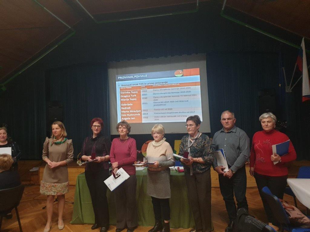 Letos je bronasti znak TZS s pisnim priznanjem iz rok sekretarke TZS Karmen Grebenc Burger prejelo 7 članov društva: Angela Jan, Edo Hudournik, Marta Mravljak, Gabrijela Rednak, Darinka Tepej, Marija Tepej in Dragica Turk. Posebna priznanja za pomemben prispevek k uspehom društva v letu 2019 so iz rok predsednice društva prejeli Zvone Kodrun, Saša Miklavžina in Jožica Brešar. Sedemnajst članov je prejelo priznanje za 10 let dela v društvu ter 20 članov pohvalo za opravljenih več kot 100 prostovoljnih ur dela.