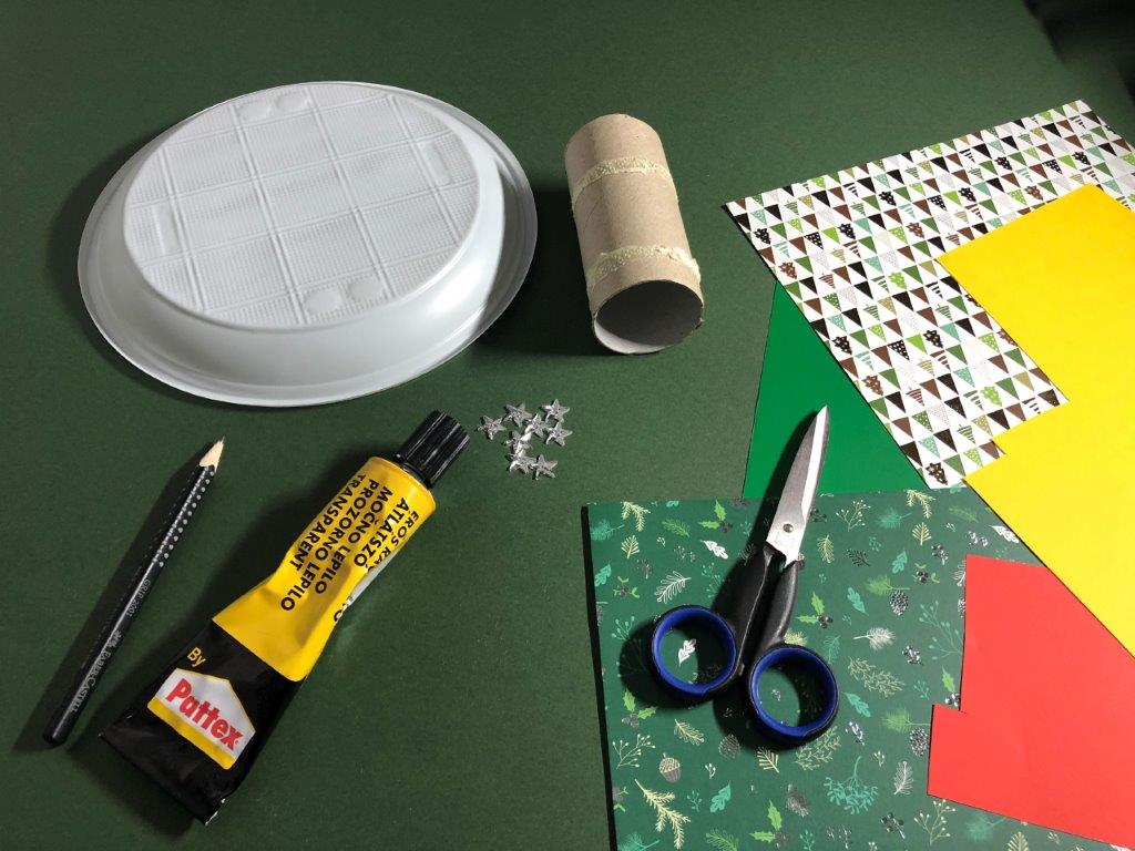 Za osnovo adventnega venčka uporabimo papirnat ali plastičen krožnik, v katerega izrežemo luknjo. Iz raznobarvnega papirja (kolaž, revije, časopisni papir,…) izrežemo listje, ki ga na eni strani prepognemo do polovice. Na narobe obrnjen krožnik v pasovih prilepimo listje. Če smo izrezali velike liste, v prvem pasu listom porežemo konice, ki štrlijo proti sredini krožnika. Ko pokrijemo celoten krožnik, venčku dodamo še okraske po želji (bleščice, rožice, storžke …)