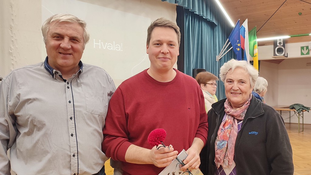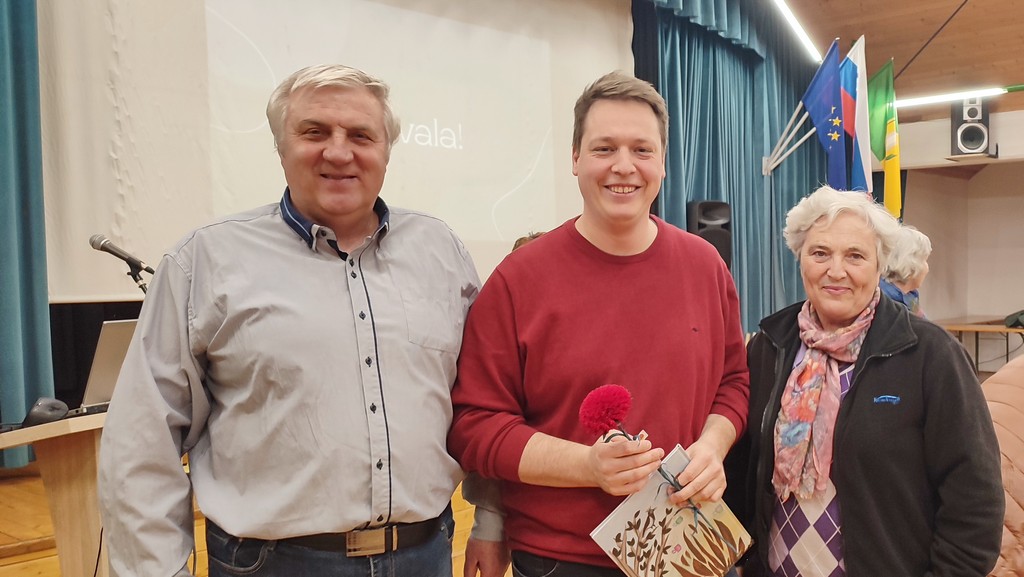 Predsednik Zvone Kodrun se je gostu zahvalil za zanimivo in poučno predavanje ter mu v zahvalo izročil nageljček iz krep papirja, ki ga je izdelala Angela Jan, članica sekcije izdelovalk rož iz krep papirja.