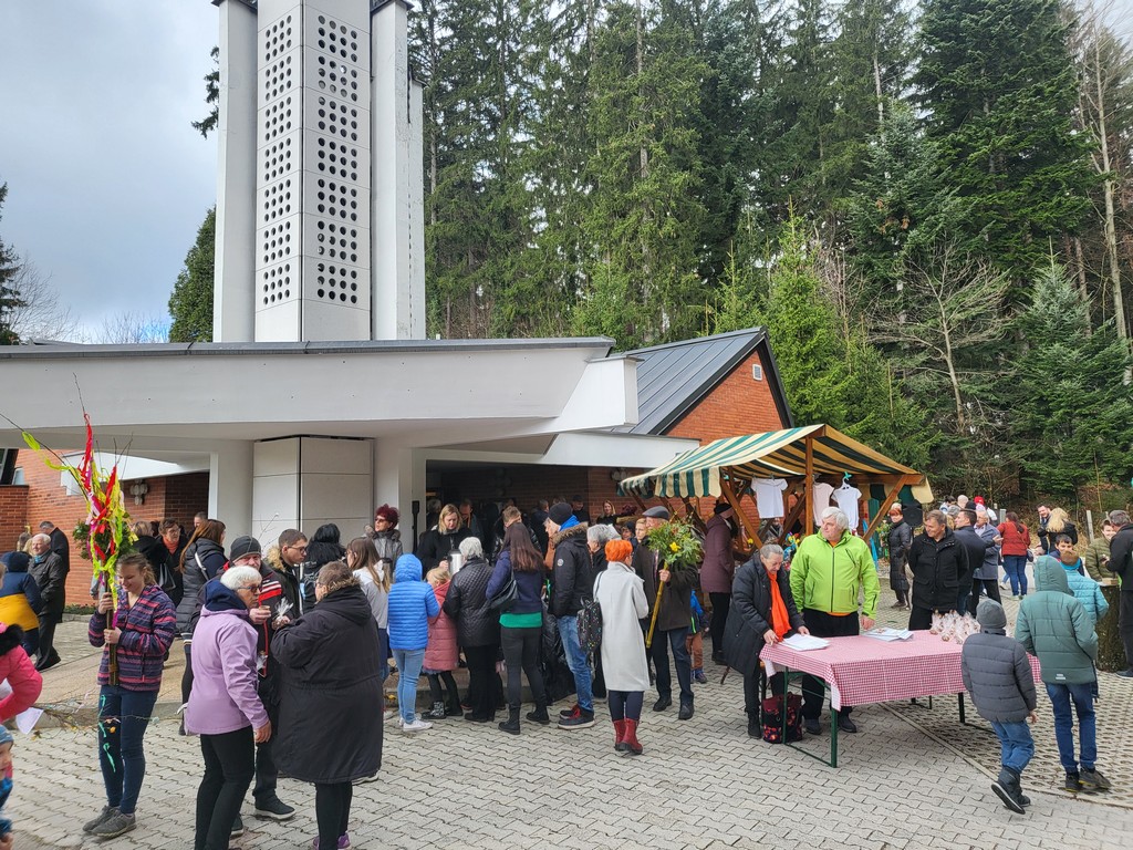 Ker je bila ravno cvetna nedelja, je bilo veliko prisotnih s snopi vseh mogočih velikosti. Blagoslovil jih je duhovnik Jože Škrinjar.