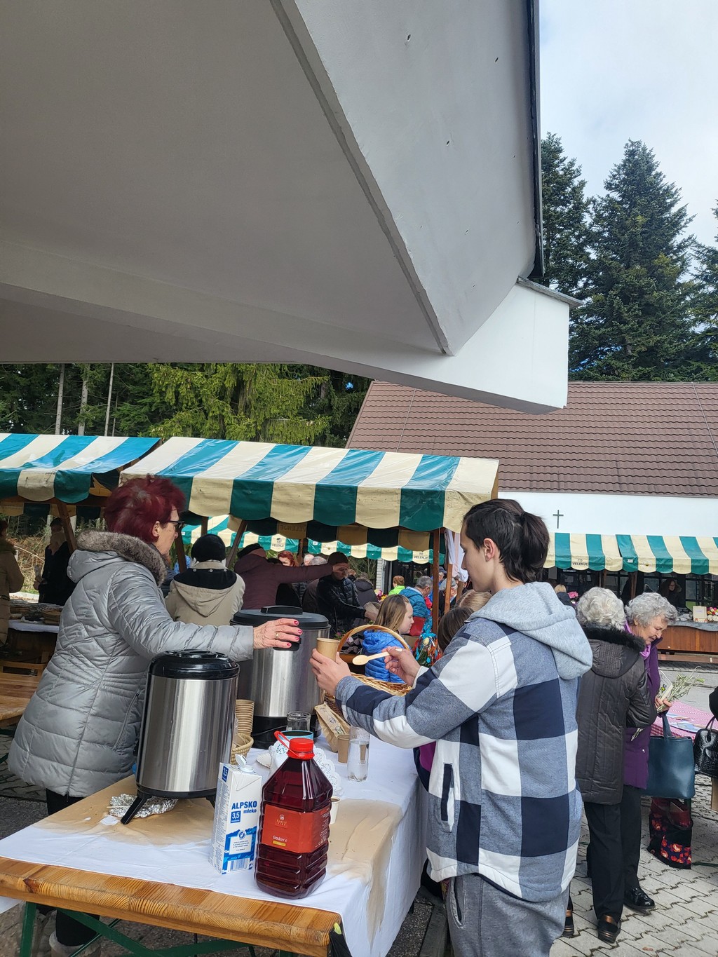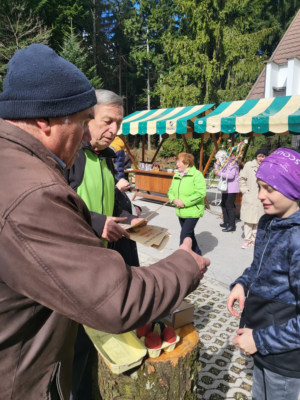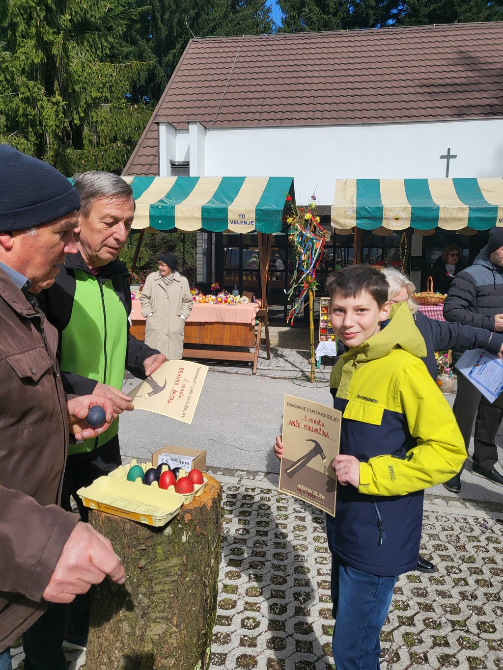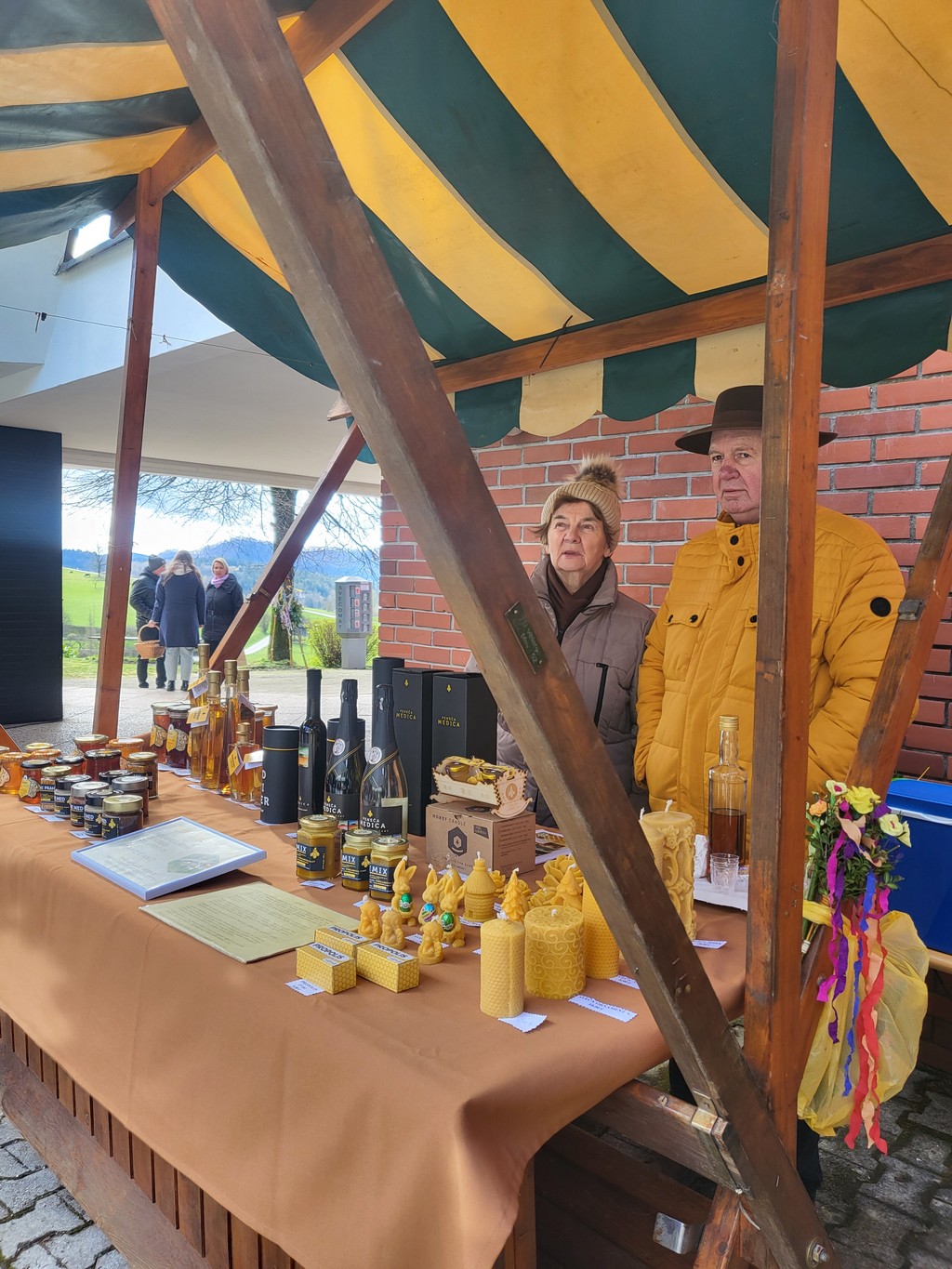 Na prostoru pred zvonikom so stale stojnice s ponudniki domačih dobrot in izdelkov: vinarstvo Rednak, čebelarstvo Čanč, otroška oblačila Ana Kontič, Skorles Irena Skornšek, sladke dobrote Jernej Šporin, sladke dobrote Darja Miklavžina, članice sekcijo izdelave rož iz krep papirja.