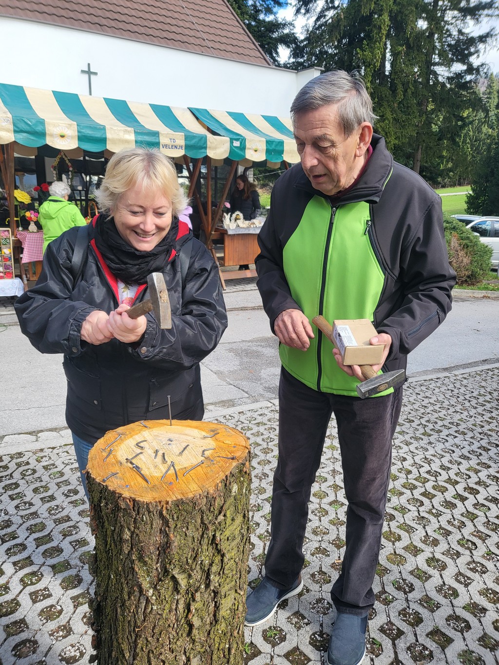 Obiskovalci so se pomerili v zabijanju žebljev v klado in »lovljenju rib« z vrvico na palici. Bilo je zelo prijetno.