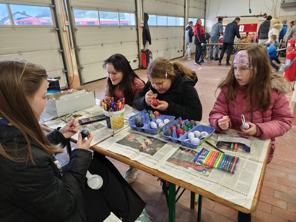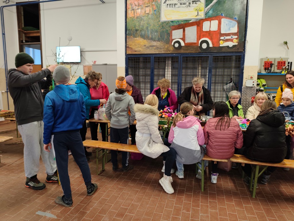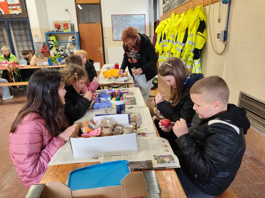 V petek, 27. marca 2026, smo v garaži gasilskega doma Škale izvedli javne delavnice izdelovanja in krašenja snopov ter krašenja pirhov pod skupnim imenom Velikonočne delavnice.