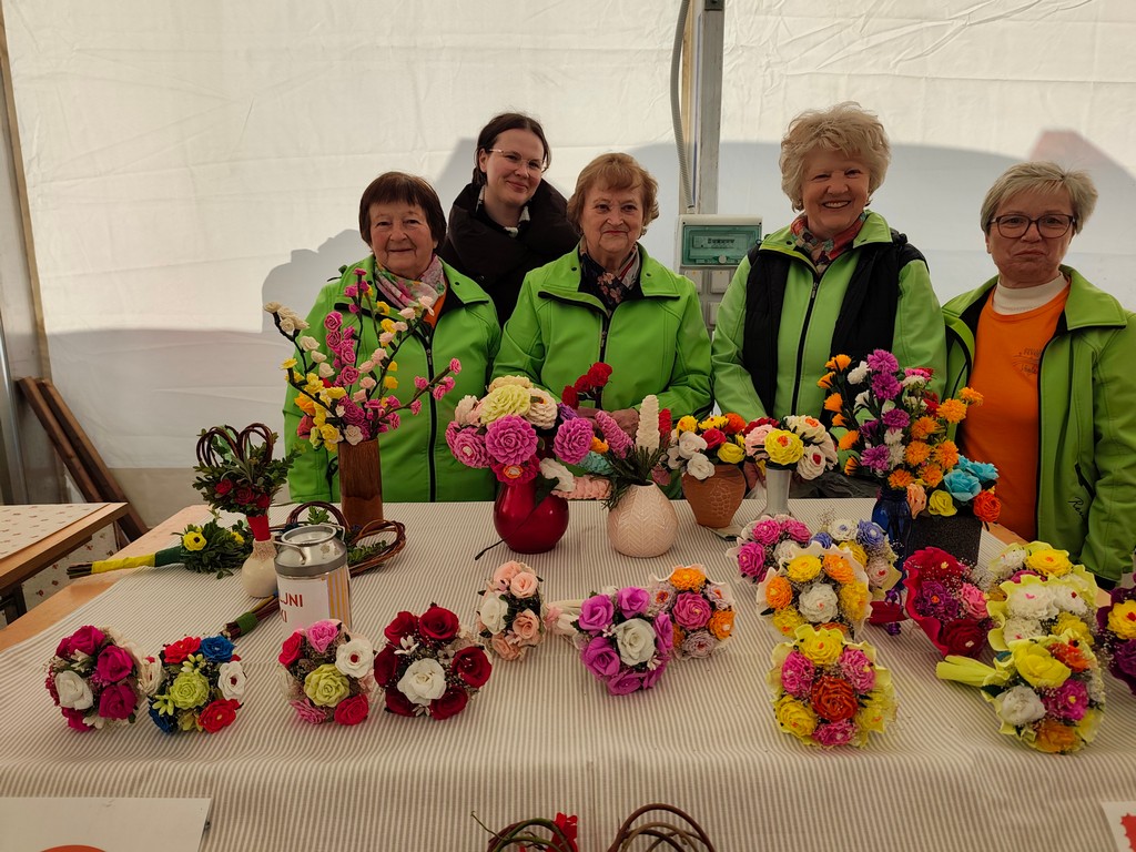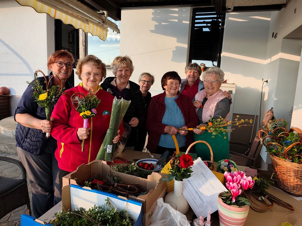Priprave na izvedbo delavnic so bile letos temeljite. Članice sekcije izdelovalk rož iz krep papirja so za nekaj snopov poskrbele že teden dni prej, da so jih lahko predstavile na razstavi na Pragerskem in na Jožefovem sejmu. V sredo, 25. marca, pa so se zbrale pri Ivici Britovšek ter pod njenim vodstvom in s prinešenim materialom izdelale in okrasile majhne snopke za predstavitev na velikonočni tržnici.