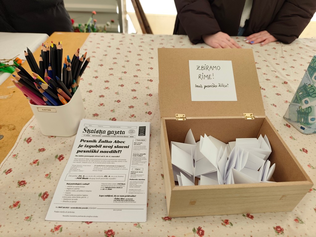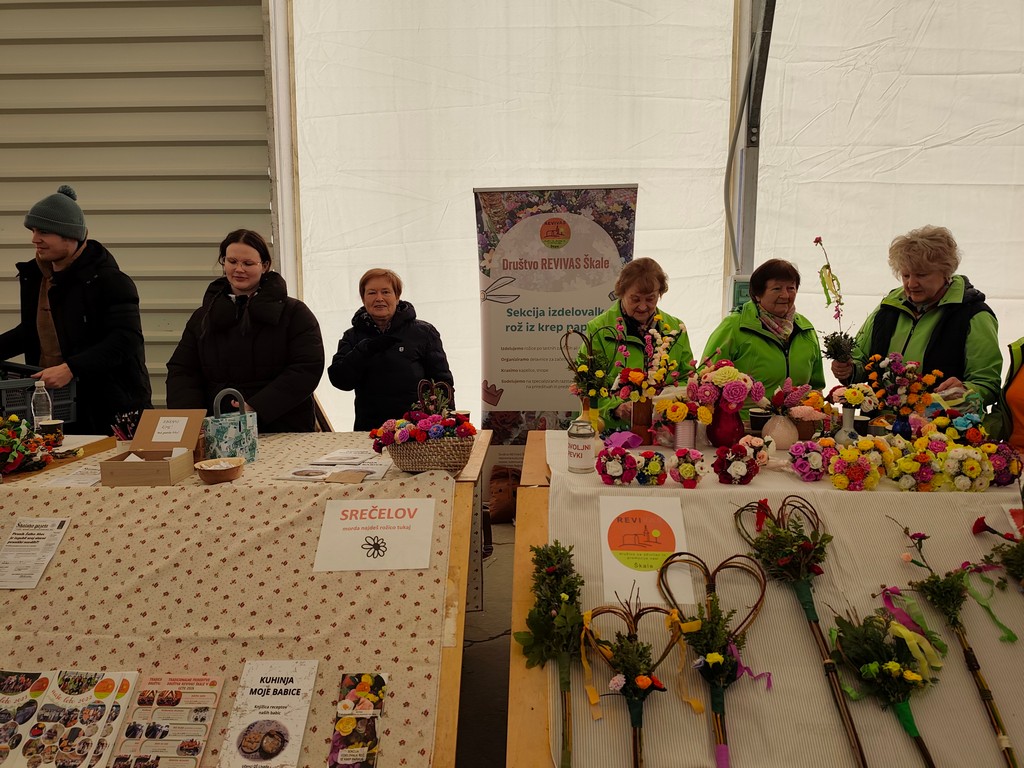 Velikonočna tržnica je v organizaciji Turistične zveze Velenje potekala v soboto, 28. marca 2026, na začasni lokaciji tržnice v Velenju, t. j. pod šotorom na parkirišču pri Elektrotehni. S snopi so se poleg društva REVIVAS Škale predstavili še TD Šalek, TD Šentilj in TD Vinska Gora. Naši stojnici so poleg snopkov krasili še šopki rožic iz krep papirja, dogodek pa smo izkoristili tudi za prodajo knjižic receptov Kuhinja moje babice ter za promocijo projekta podmladka Noč knjige. Nabralo se je kar nekaj rim, pa tudi knjige in snopki so šli za med.