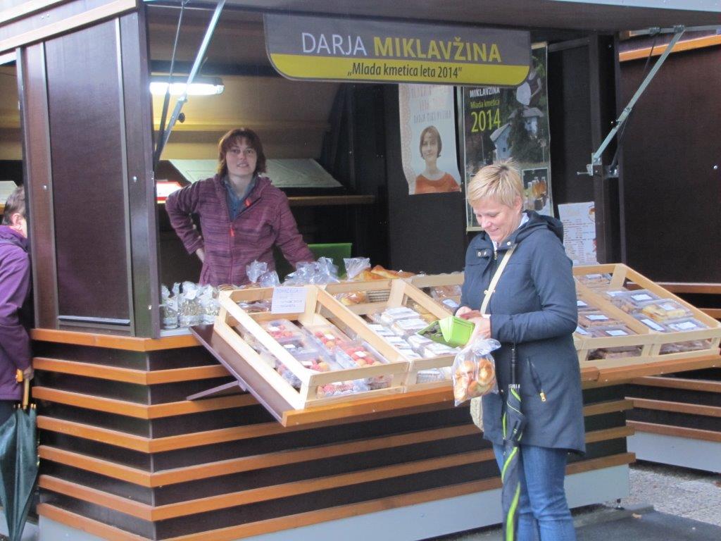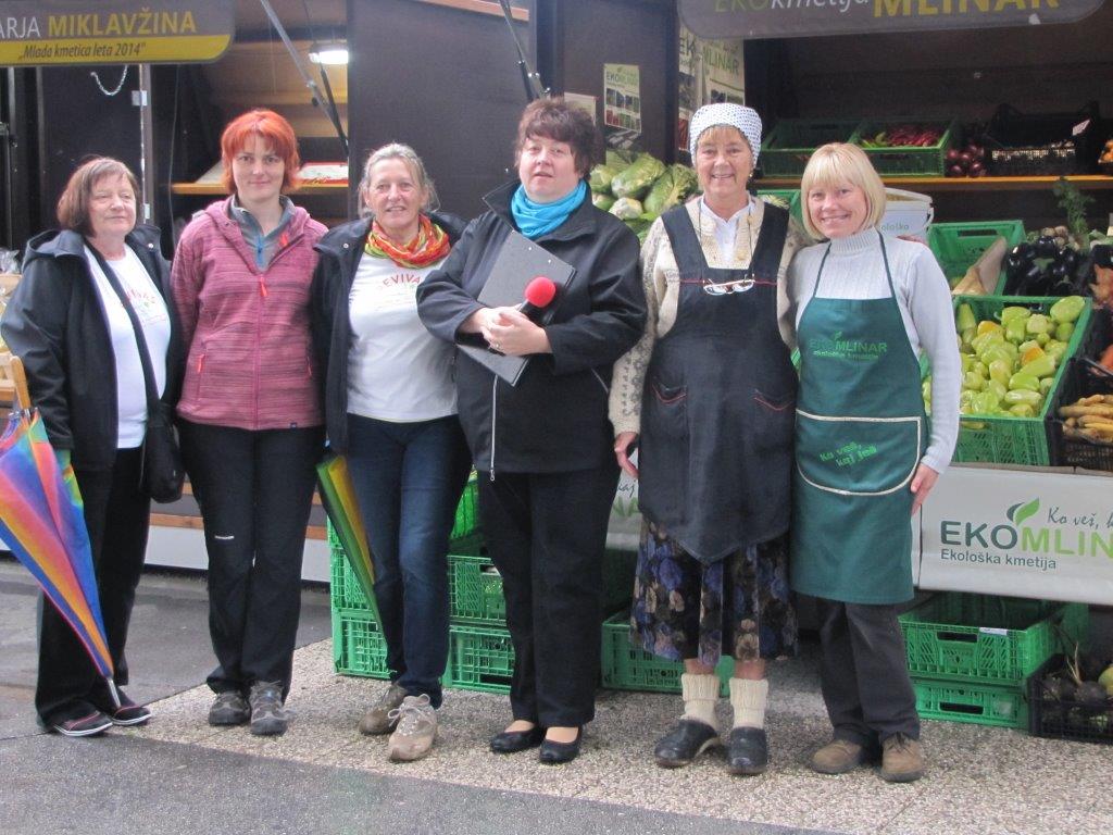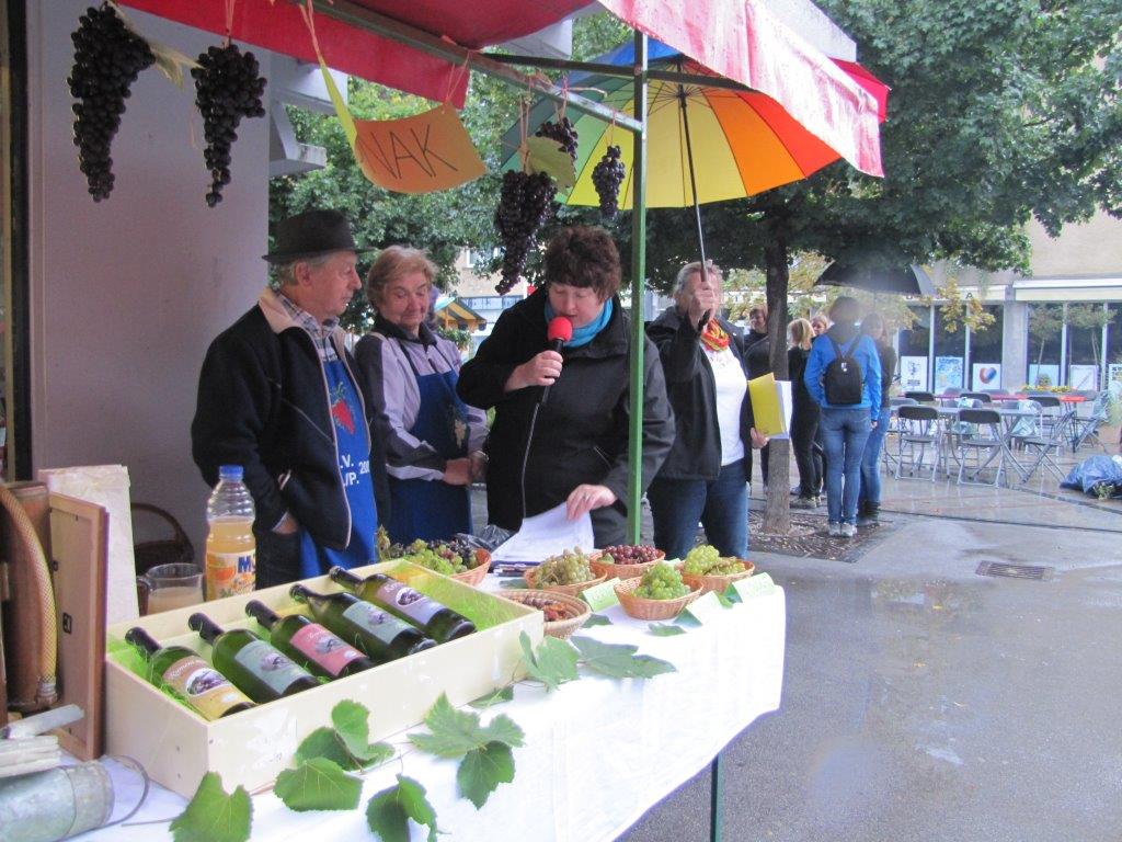 Ko se je po deseti uri končno začelo kazati sonce, je bila priložnost za boljšo predstavitev ponudnikov, s katerimi sodelujemo pri tej in drugih prireditvah: Ekološke kmetije Mlinar, Darje Miklavžina s Strževe domačije, vinogradništva Branka in Elice Rednak, izdelovalca lesenih zabojev Ivana Krenkerja, Okrepčevalnice Ribiški dom, Ansambla Žarek ter seveda naših izdelovalk rož iz krep papirja. Vsak od njih je obiskovalcem zastavil nagradno vprašanje in podelil simbolično nagrado. Obiskovalci so si lahko nekaj malega prislužili tudi s prepoznavanjem pridelkov, skritih v naši vreči.