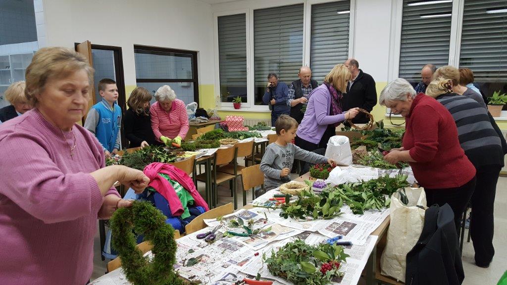 V petek, 27. novembra 2015 smo že sedmo leto zapored na delavnicah ustvarjali novoletne okraske in izdelovali adventne venčke. V podružnični osnovni šoli Livada Škale se nas je zbralo preko 60, od tega polovica otrok - tabornikov in mladih turistov. Otroci so večinoma izdelovali okraske iz papirja, ozaljšane z bleščicami, v pomoč pa so jim bili Lea Lipnik in taborniki vodniki. Nekateri so se pridružili tudi skupini odraslih, ki je pod vodstvom Marije Glinšek izdelovala adventne venčke. Zelenja in okraskov je bilo na razpolago dovolj, dobre volje in zagnanosti tudi. Kaj hitro so začeli pod spretnimi prsti nastajati namizni aranžmaji in viseči venčki, eden lepši in zanimivejši od drugega.