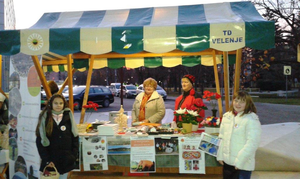 V organizaciji Festivala Velenje pa je v petek, 11. decembra 2015 potekal na velenjski promenadi Praznični sejem. Celodnevni dogodek je doživel vrhunec proti večeru, ko je prispel Dedek Mraz, za njim pa še pevka Alya. Naše društvo se je, tako kot v Plešivcu, predstavilo z rožami iz krep papirja in lesenimi izdelki, kupiti pa je bilo možno naše knjige. Otroke in odrasle so pritegnile tudi miselne igre s kockami. Predstavitev sta popestrili mladi turistki Saša in Eva, ki sta poskušali od obiskovalcev sejma izvedeti, ali lahko na otip prepoznajo predmete v vreči - komur je uspelo, je dobil sladko nagrado. V vreči se je skrivalo marsikaj, kar povezujemo s prazničnim decembrom, od pomaranče do prašička.