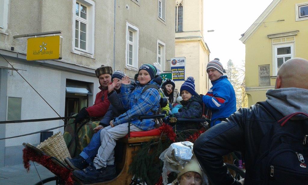Preden je Pravljična dežela zaprla svoja vrata, so se naši mladi turisti posladkali pri Sladkem Toniju in se s kočijo popeljali po mestnem jedru. In da ne bi Celja zapustili lačni, so si v piceriji Koper pred odhodom vlaka privoščili še košček pice. Seveda izlet na tak dan ne bi bil popoln, če ne bi bilo daril. V Paški vasi jih je prinesel na vlak kar naš lokalni Božiček Edo Hudournik. Potem ko je otrokom izvabil pesmico o zimi in jim obljubil sneg (če bodo pridni), jim je razdelil še "srečke", ki so vsem mladim turistom prinesle majhen paket sladkarij. V Velenje smo se vrnili dobre volje in polni vtisov.