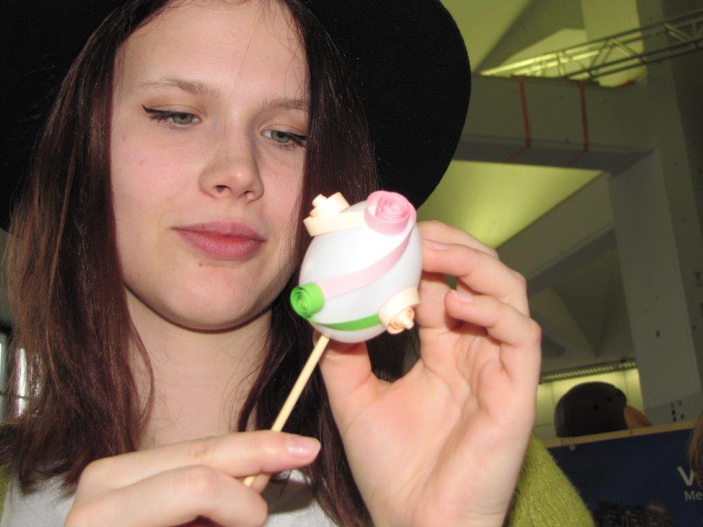 Kot nosilec izdelovanja cvetnonedeljskih butar in rož iz krep papirja smo predstavili snope, značilne za naš kraj. Rožice iz krep papirja so si lahko obiskovalci tudi sami izdelali. Prikazali smo nekaj tehnik krašenja pirhov – kot vsako leto, jih bomo krasili tudi na letošnjih velikonočnih delavnicah.