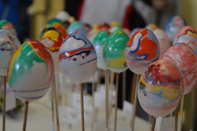 Za krašenje pirhov je bilo pripravljenih kar nekaj delavnic, v katerih so uživali predvsem otroci: ustvarjali so lahko na trdo kuhanih pobarvanih jajcih ali na plastičnih, izbirali pa so lahko med nanašanjem barv s čopičem in flomastrom ali krašenjem z barvnimi trakovi. Za vse obiskovalce pa je bilo posebno doživetje krašenje pirhov s tehniko marmoriranja.