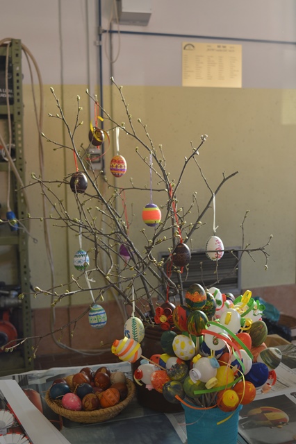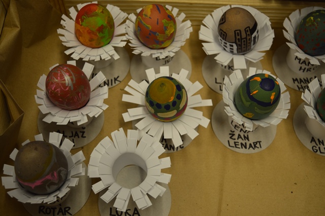 V času delavnice smo zbirali tudi pirhe za razstavo. Posebej smo bili veseli eksponatov, ki so jih obiskovalci dostavili na podlagi našega poziva. Seveda pa smo vključili tudi izdelke, ki so nastali na delavnici. Razstavo smo po zaključku delavnic prestavili v vežo gasilskega doma, kjer je bila na ogled v soboto, v nedeljo pa smo del razstave prenesli na Jožefov sejem.