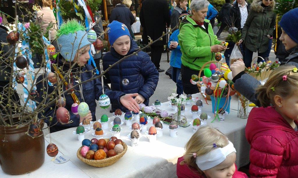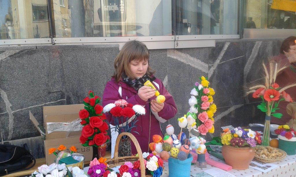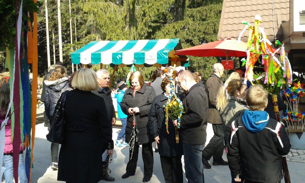 Po uspešno izvedenih velikonočnih delavnicah se je društvo REVIVAS Škale v soboto, 19. marca 2016 dopoldne predstavilo še v Velenju na t. i. velikonočni tržnici. Turistično društvo Vinska Gora je izdelalo veliko snopov, naše izdelovalke rož pa so poskrbele za njihovo okrasitev. Predstavljali smo tudi škalski snop, izdelke naših mojstric in nekaj tehnik krašenja pirhov. Naši dve stojnici so krasile pisane rožice, pirhi in šarkelj, kakršnega so nekoč botre prinesle otrokom za pisanko. V njem seveda ni manjkal pirh in 100 dinarjev, zraven pa sta sodila še pomaranča in kos pisanega blaga.