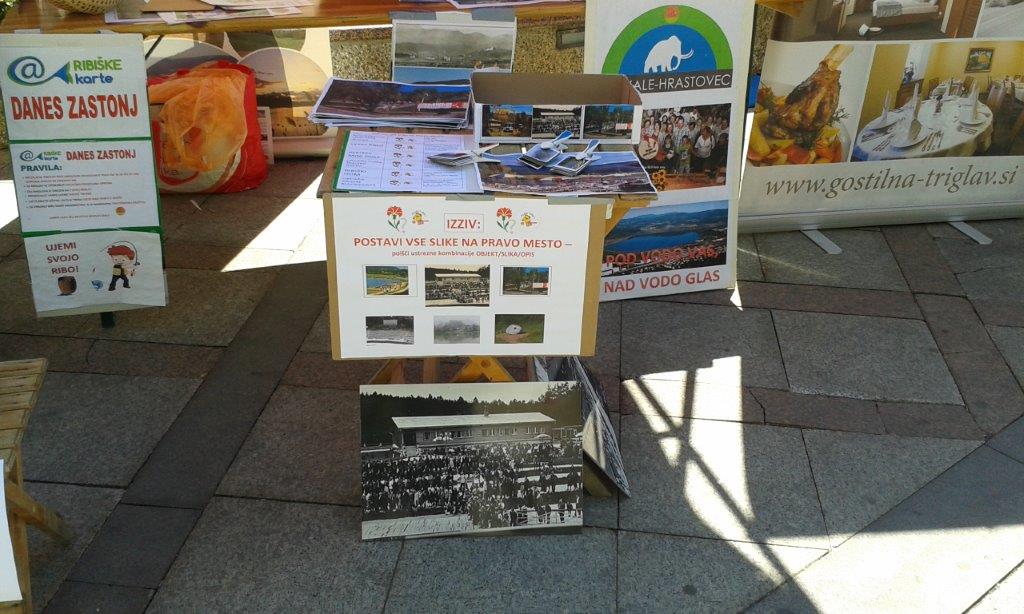 Društvo REVIVAS Škale se je tokrat predstavilo kar na dveh stojnicah: eno so zavzele izdelovalke rož iz krep papirja s svojimi čudovitimi izdelki, druga pa je bila namenjena predstavitvam ostalih dejavnosti društva, zaključenih in načrtovanih projektov ter seveda turistični ponudbi v poletnem času. Predstavili smo možne aktivnosti in doživetja ob Škalskem jezeru, ki smo jih podkrepili še z zabavnim »ribolovom«. S fotografijami nekdanje restavracije in drugih objektov smo obiskovalce spominjali na začetke turizma ob Škalskem jezeru ter na obletnico otvoritve restavracije in kopališča (14. 6. 1953). Če so se malo potrudili in poiskali kombinacije opisov in fotografij, so si lahko prislužili eno od sličic. Ni jih bilo malo, ki so se zelo razveselili teh drobnih spominčkov, ob katerih so nam mimogrede povedali še kakšno zgodbico.