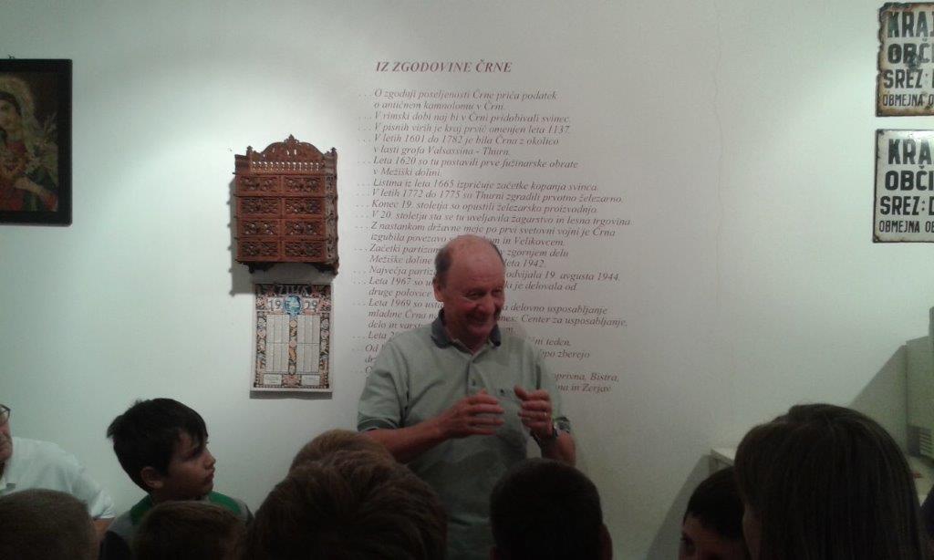 Pot, ki jo je sproti zanimivo opisovala Elica, nas je najprej vodila čez Sleme v Črno na Koroškem, ki je prejela že nekaj priznanj Turistične zveze Slovenije za urejenost in gostoljubje. Na trgu v središču mesta nas je pozdravila delavka TIC ter nas popeljala mimo spominskega parka in nagačenega medveda do prostorov bivše pošte, v kateri sta urejena etnološka zbirka in razstava o olimpijcih. Oboje nam je zelo nazorno in zanimivo ter z uporabo koroških besed prikazal g. Alojz Repanšek, ki nas je nato popeljal še do rudarskega muzeja na prostem.