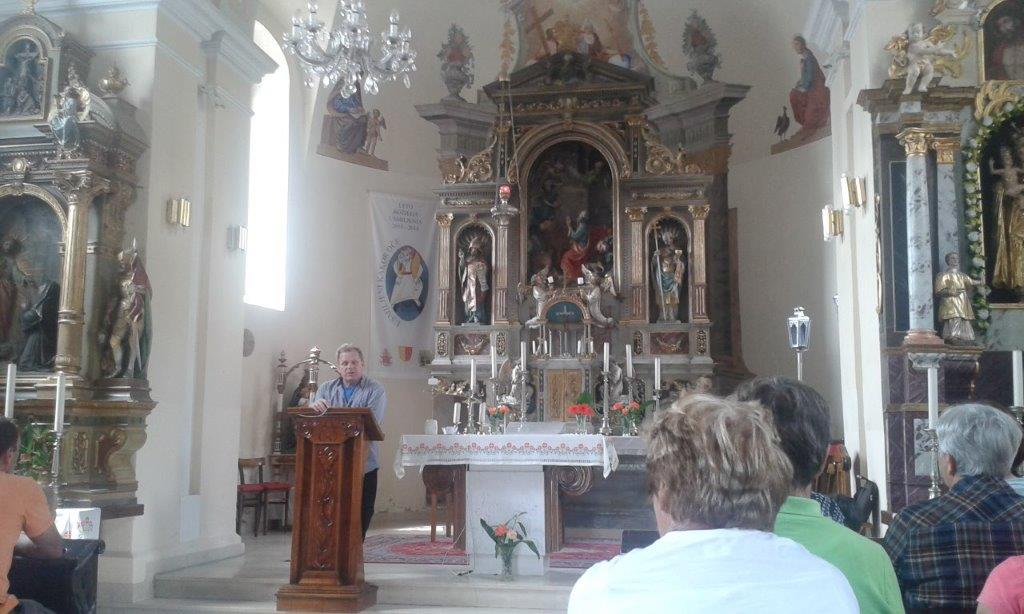 Avtobus nas je nato odpeljal proti turistični vasi Šentanel, med potjo pa smo si ogledali zanimivosti v Poljani nad Prevaljami (spomenik NOB, spominski park, kozolec in lesene skulpture) ter kamniti železniški Štoparjev most. Z razgledne točke nad Šentanelom, ob kapelici sv. Uršule in piknik prostoru, se nam je odprl pogled na okoliške hribe in doline, nato pa nam je g. Jože Hrastnik razkazal in podrobneje predstavil še središče vasi Šentanel s cerkvijo sv. Danijela. Na turistični kmetiji Ploder so nam pripravili okusno kosilo, poskusili smo tudi koroško specialiteto "kločeve nudlne". Otroci so preskusili še igrala, odrasli pa smo uživali ob "moštu", kavici in svežem zraku.