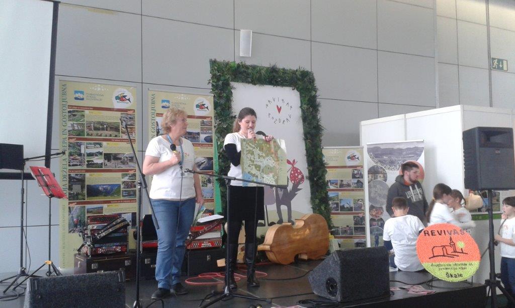 V soboto, 4. februarja, pa so člani društva REVIVAS, večinoma mladi turisti, na tem odru poskrbeli še za prisrčno in zanimivo predstavitev našega kraja in dejavnosti društva, ki so jo popestrili z glasbenimi vložki. Informacije o kraju in društvu sta podala Jure in Tjaž. Deklico Fano, volkca Jurija in zemljevid sta predstavili njihova avtorica Ana Glinšek in Eva Kumer, mlade turistke Neja, Tinkara in Tjaša pa so pri tem z veseljem demonstrirale in razložile vsebino in uporabnost culic. Ana in Eva sta še povabili obiskovalce na odkrivanje zanimivosti in doživetja v okolici Škalskega jezera ter napovedali še več podobnih produktov z doživetji v naravi, ki jih bomo pripravili z mladimi turist.