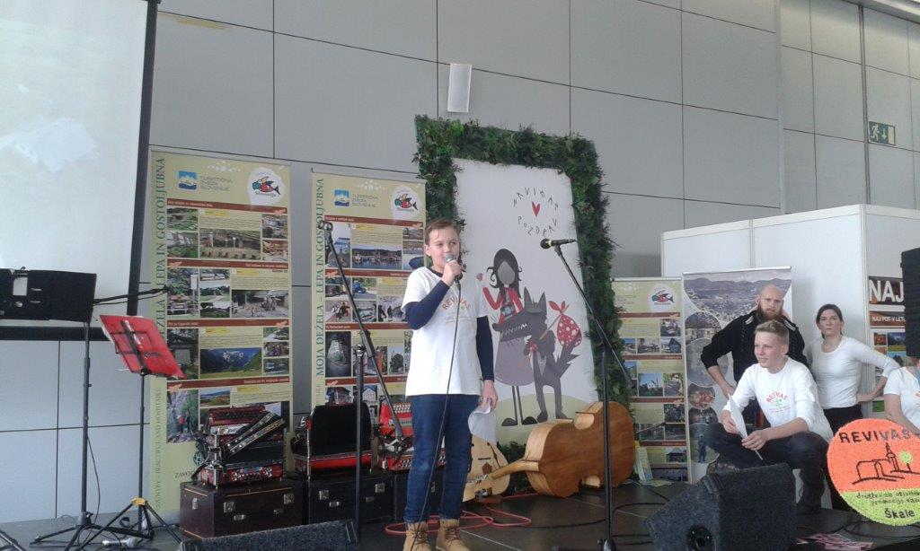V soboto, 4. februarja, pa so člani društva REVIVAS, večinoma mladi turisti, na tem odru poskrbeli še za prisrčno in zanimivo predstavitev našega kraja in dejavnosti društva, ki so jo popestrili z glasbenimi vložki. Informacije o kraju in društvu sta podala Jure in Tjaž. Deklico Fano, volkca Jurija in zemljevid sta predstavili njihova avtorica Ana Glinšek in Eva Kumer, mlade turistke Neja, Tinkara in Tjaša pa so pri tem z veseljem demonstrirale in razložile vsebino in uporabnost culic. Ana in Eva sta še povabili obiskovalce na odkrivanje zanimivosti in doživetja v okolici Škalskega jezera ter napovedali še več podobnih produktov z doživetji v naravi, ki jih bomo pripravili z mladimi turist.