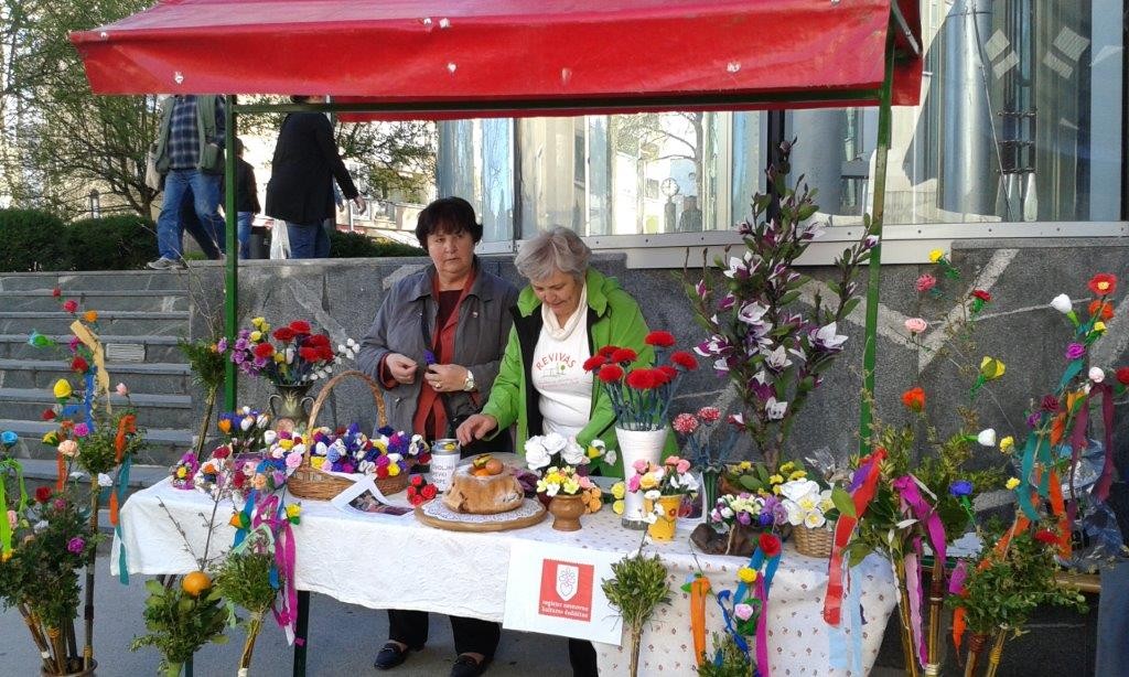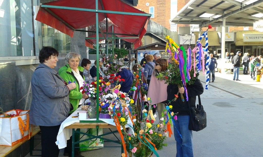 S snopi in rožicami iz krep papirja smo se v soboto, 8. aprila, predstavili na velikonočni tržnici v Velenju. Obiskovalcem smo predstavili, kako in iz česa se v naših krajih izdelujejo snopi ter kako se krasijo, lahko pa so kakšen izdelek tudi dobili.