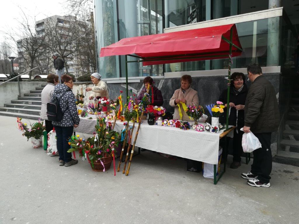 V soboto, 24. marca 2018, dopoldne se je društvo v sklopu Turistične zveze Velenje predstavilo na mestni tržnici z velikonočnimi običaji. Pripravili smo aranžmaje, značilne za čas okrog velike noči (blagoslov jedi in ognja, pisanko), večino prestavitve pa so zavzemali snopi in rože iz krep papirja, značilni za cvetno nedeljo. Članice sekcije izdelovalk rož iz krep papirja so obiskovalcem po želji tudi dodatno okrasile izbrani snop. Istega dne popoldne so izdelovalke rož sodelovale še na velikonočnih delavnicah, ki jih je organiziral Muzej Velenje na Velenjskem gradu. Udeležencem delavnice je bila posebej predstavljena razstava rož v kapelici svetega Jurija.