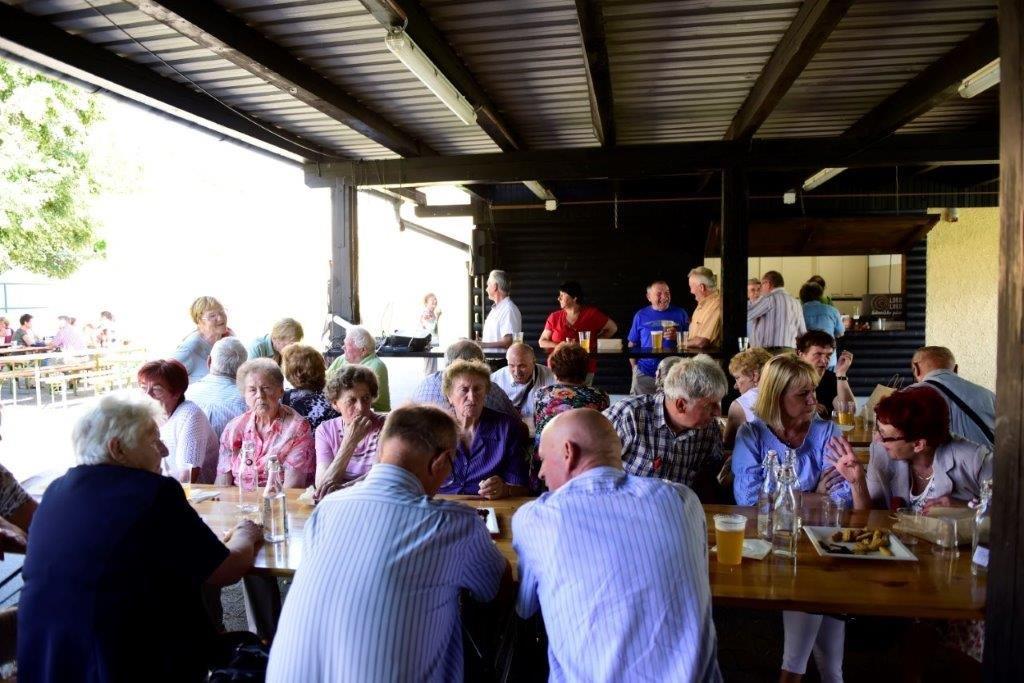 Popoldne je minilo v zares prijetnem vzdušju, h kateremu je dodatno pripomogel še slasten ričet, za katerega je poskrbel Zvone Kodrun. Ričet smo postregli v unikatnih emajliranih skledicah. Skledice so za spomin prejeli tudi vsi preseljeni Škalčani- poleg obveznih nageljčkov, ki so jih izdelale članice sekcije izdelovalk rož iz krep papirja.