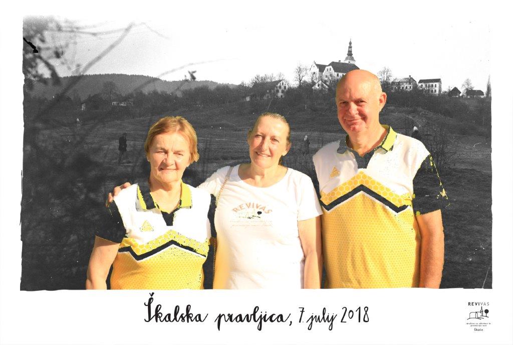 V soboto, 7. julija popoldne je v sklopu projekta Škalska pravljica potekalo 18. srečanje preseljenih Škalčanov ter srečanje učiteljic, ki so poučevale v Škalah do leta 1988. Udeležba preseljenih Škalčanov je bila solidna. Od 15 še živečih učiteljic se je vabilu odzvalo 11, dve sta morali zaradi zdravstvenih težav svojo udeležbo odpovedati. Za goste in druge obiskovalce smo v dvorani KS v gasilskem domu pripravili kratek kulturni program, ki ga je povezovala Klara Jan, v njem pa so poleg članov društva REVIVAS sodelovali še Ana Kontič in ljudske pevke Gaberški cvet. Goste so pozdravili predsednica društva REVIVAS Škale Verica Pogačar, predsednik sveta KS Božidar Repnik ter dolgoletni organizator srečanj preseljenih Škalčanov Herman Arlič. Sledilo je druženje pred gasilskim domom, kjer smo poskrbeli za sceno, ki je spominjala na prvotno središče vasi: od podob Škalskega hriba, lipe in vodnjaka do "sejmišča". Na stojnicah so se predstavili lokalni ponudniki (Darja Miklavžina, Čebelarstvo Čanč, Jože Ržen, LOKO-LOKO, sekcija izdelovalk rož iz krep papirja) in Turistično društvo Šmartno ob Paki z zeliščnimi izdelki. Obiskovalci so lahko izkoristili fotografiranje na foto stojnici, še posebej zanimivo pa je bilo fotografiranje učencev z njihovimi učiteljicami in Mimiko, ki je dolga leta skrbela za šolo in malice učencev. Rdeča nit popoldneva je bilo obujanje spominov na šolo. Moderatorka Pavlica Šibanc Kodrun je skrbela, da je bilo na prizorišču ves čas živahno in zanimivo. Vsak, ki je bil pripravljen z obiskovalci deliti kakšno anekdoto iz šolskih klopi, je za nagrado prejel imitacijo šolske tablice, ki jo je za to priložnost izdelalo Mizarstvo Meh.