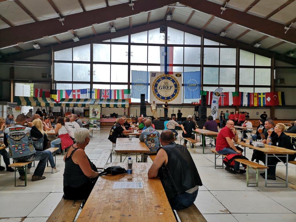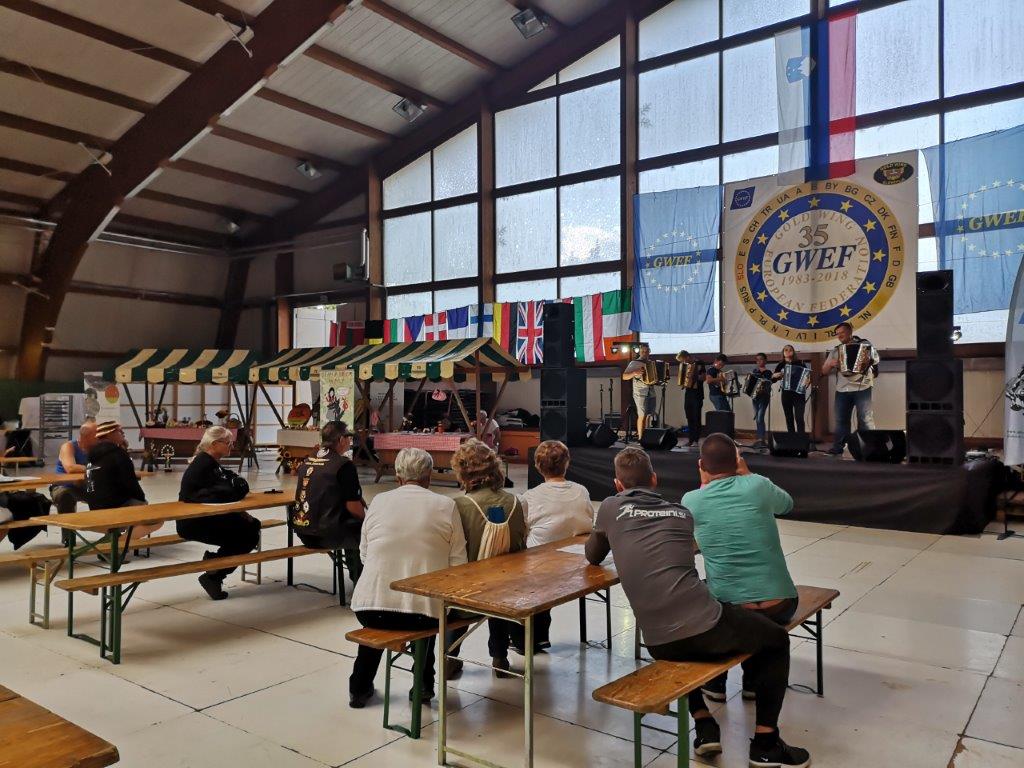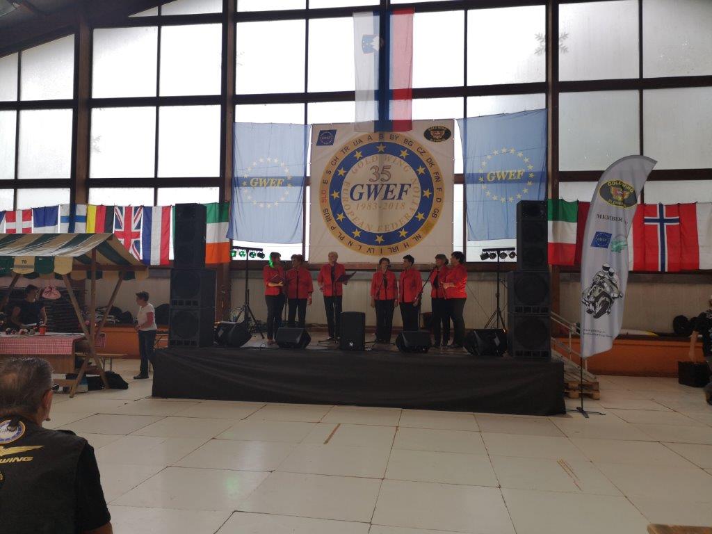 V četrtek, 28. junija, smo se predstavili na mednarodnem srečanju motoristov Gold Wing v beli dvorani pri Velenjskem jezeru. V programu na odru, ki sta ga izvedla Zvone Kodrun in Janja Gril, so sodelovale ljudske pevke Gaberški cvet ter harmonikarji glasbene šole Goličnik. Na stojnicah smo predstavljali sekcijo izdelovalk rož iz krep papirja ter produkt S Fano in Jurijem na potep.