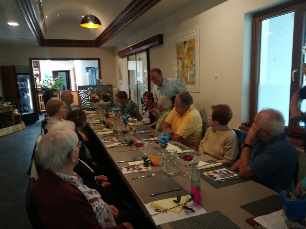 Na prvo sredo v septembru, 5. 9., smo se, kot tradicija veleva, predstavili na srečanju šahtnčanov v restavraciji Jezero v Velenju. Šahtnčane so zabavali Zvone, Olga in Marta, pomagala je mlada turistka Natalia Jakop s harmoniko, Angela Jan pa je poskrbela za pozornost - velike vrtnice iz krep papirja.