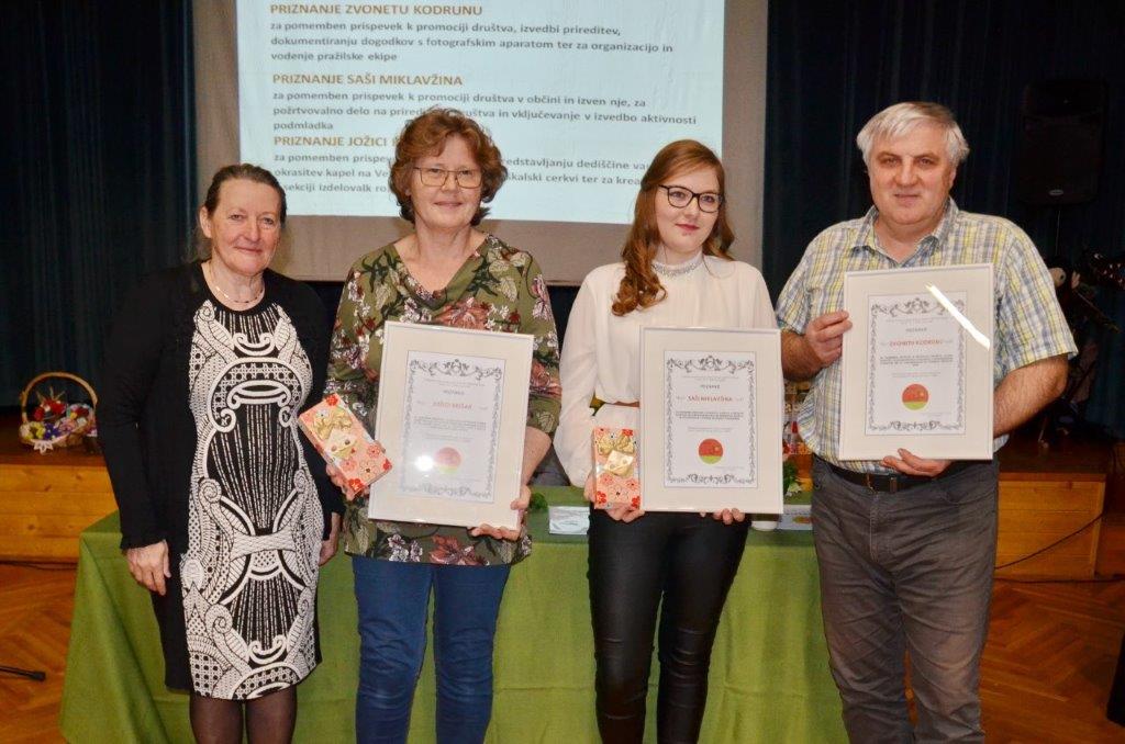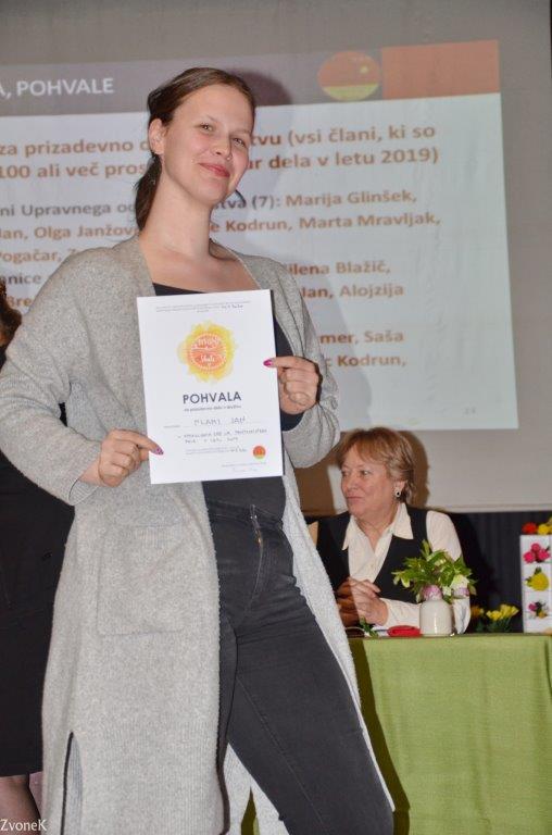 Letos je bronasti znak TZS s pisnim priznanjem iz rok sekretarke TZS Karmen Grebenc Burger prejelo 7 članov društva: Angela Jan, Edo Hudournik, Marta Mravljak, Gabrijela Rednak, Darinka Tepej, Marija Tepej in Dragica Turk. Posebna priznanja za pomemben prispevek k uspehom društva v letu 2019 so iz rok predsednice društva prejeli Zvone Kodrun, Saša Miklavžina in Jožica Brešar. Sedemnajst članov je prejelo priznanje za 10 let dela v društvu ter 20 članov pohvalo za opravljenih več kot 100 prostovoljnih ur dela.