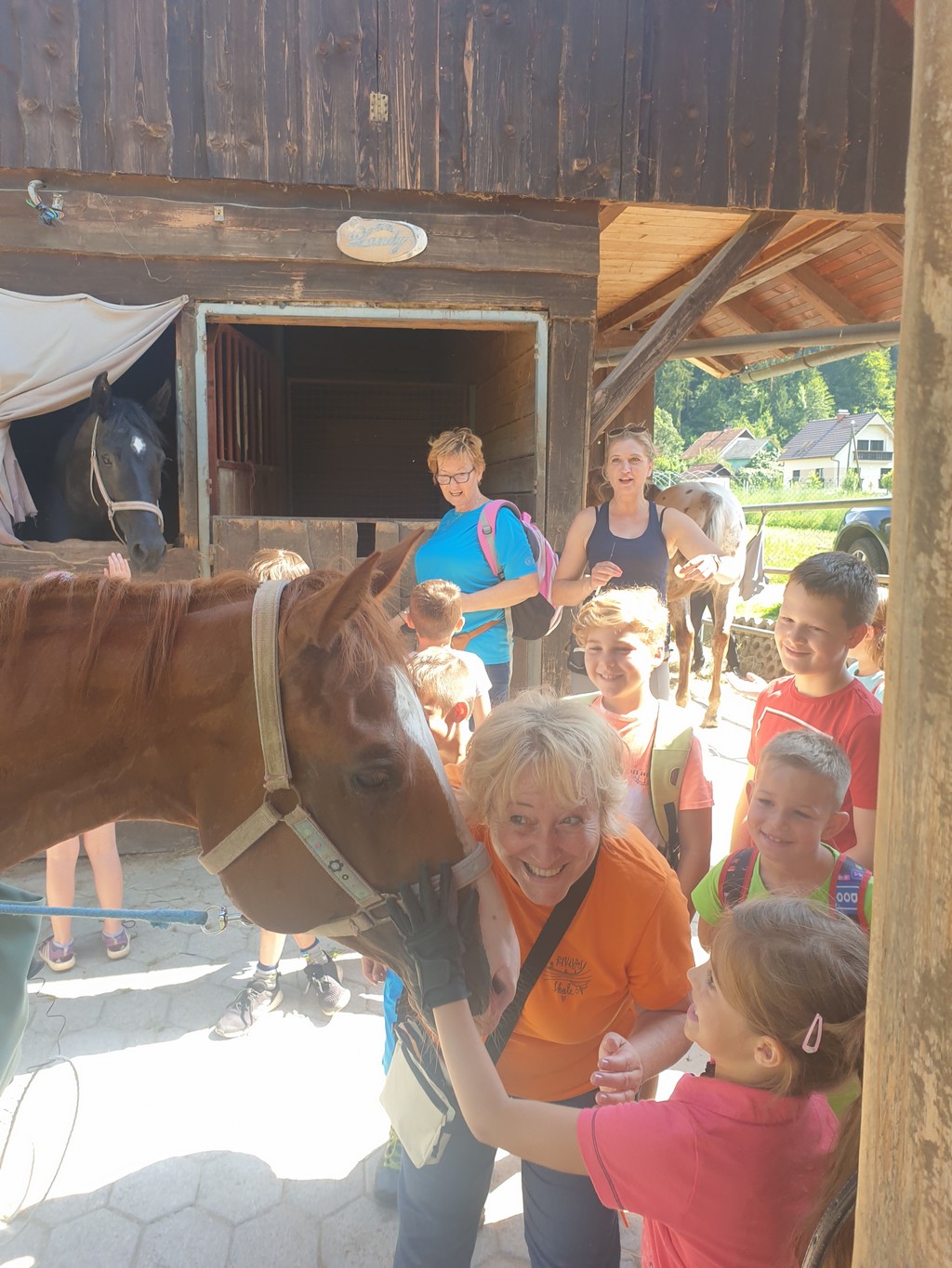 Nego in vzrejo konj so otroci pobliže spoznali na srečanju 29. julija, ko so obiskali Konjerejo Škale. Skupino, ki jo je vodil Zvone Kodrun, so sprejele animatorke Urška, Brina in Sanda ter jih popeljale skozi hleve in nato seveda na jahanje. Vsak udeleženec se je lahko povzpel na konjev hrbet in naredil kratek sprehod, ki mu je zagotovo ostal v spominu.