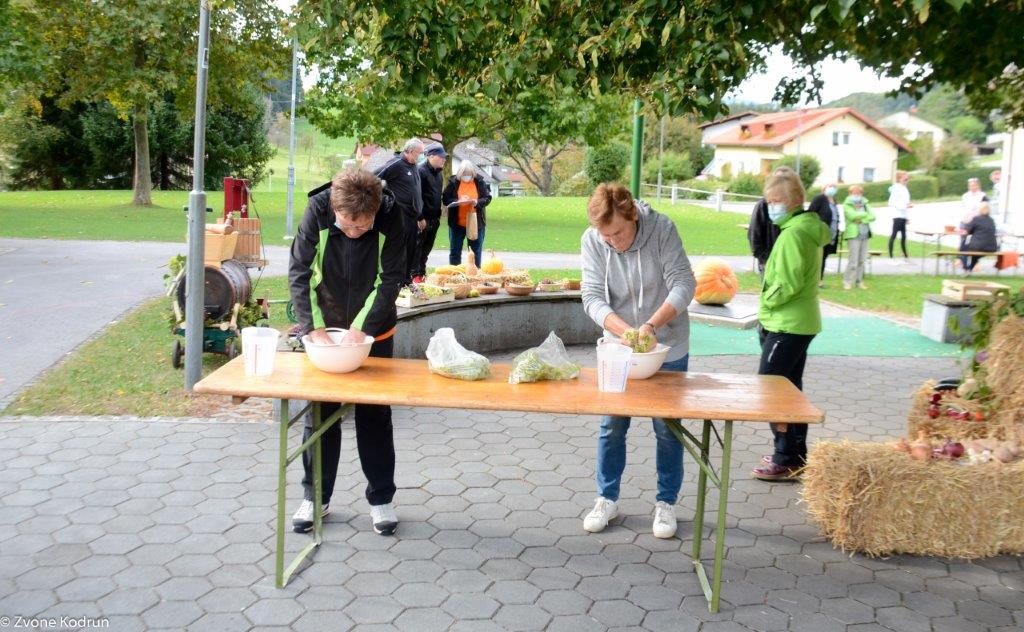 Razstava pridelkov, ki je stalnica vsake Jeseni na vasi, je bila zelo pisana. Za aranžiranje je poskrbela Marija Glinšek. Obiskovalci so prinesli na ogled pridelke, ki so izstopali zaradi svoje velikosti, oblike, barve ipd., od srčkastega krompirja do buče velikanke. Letos so med razstavnimi eksponati tudi sami izbirali NAJ pridelke. Največ glasov je prejela kompozicija »od grozdja do mošta«, za katero se je posebej potrudi Jože Ržen, takoj za njo pa je bila buča velikanka (težka dobrih 50 kg), ki jo je pridelal Darko Repnik. Tretje mesto sta si delili čebula, ki jo je pridelala Marjana Keršič, in krompir, ki je zrastel pri Ivanki Špital.