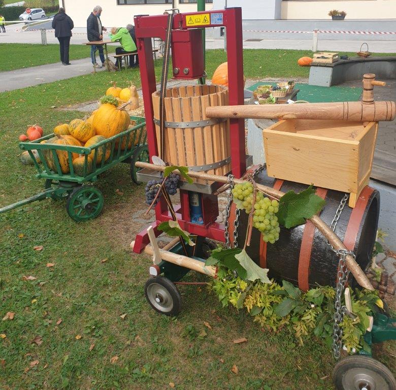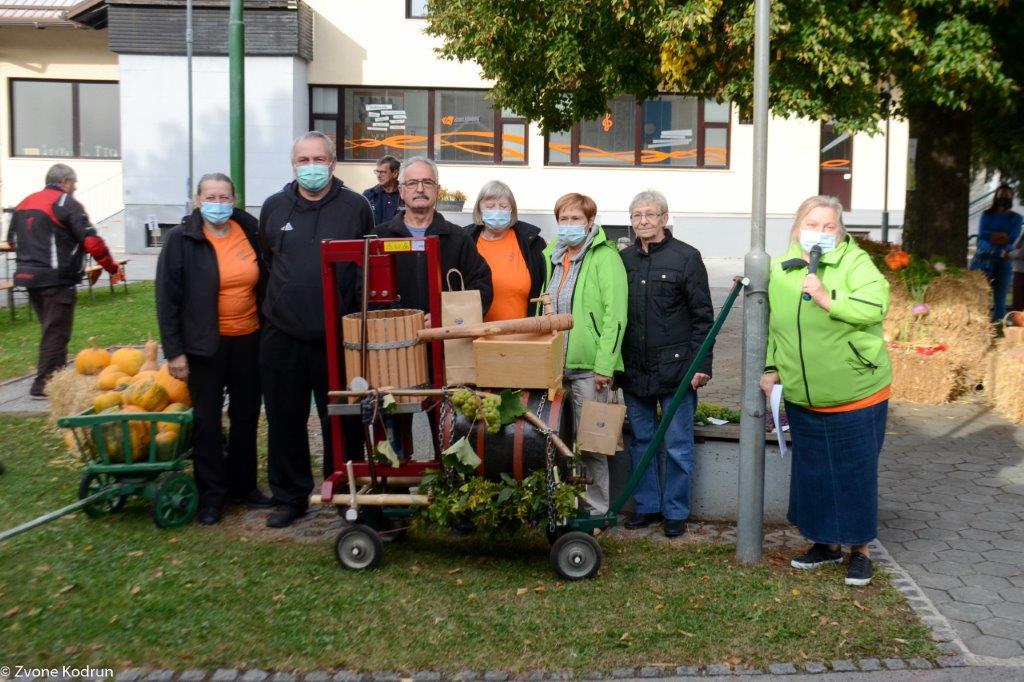 Na svetovni dan turizma, v nedeljo, 27. septembra 2020, popoldne smo pri gasilskem domu Škale organizirali tradicionalno prireditev Jesen na vasi. Posebna tema letošnje bilo grozdje. Pripravili smo razstavo različnih sort grozdja, ki jih gojijo domačini v domačih brajdah ali v vinogradih. Slednjih v kraju sicer ni več, kar nekaj krajanov pa jih ima na bolj vinorodnih območjih. Med temi sta tudi Gabrijela in Branko Rednak, ki že dobrih 40 let obdelujeta svoj vinograd v Klokočovniku pri Ločah. Zanimivosti pridelave grozdja je obiskovalcem predstavila Pavlica Šibanc Kodrun, ki je povezovala program prireditve. Z grozdjem so bile povezane tudi zabavne igre. Obiskovalci so ugibali, koliko jagod je v enem izmed grozdov, pomerili pa so se lahko tudi v »prešanju« mošta.