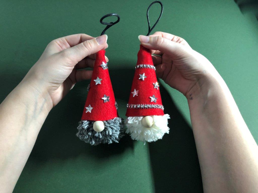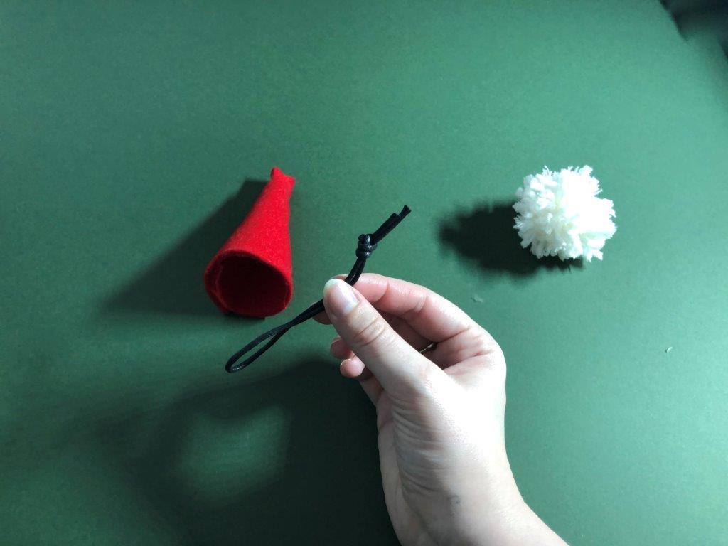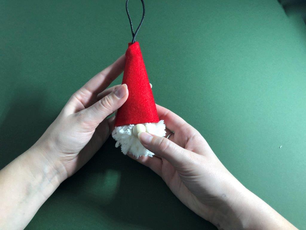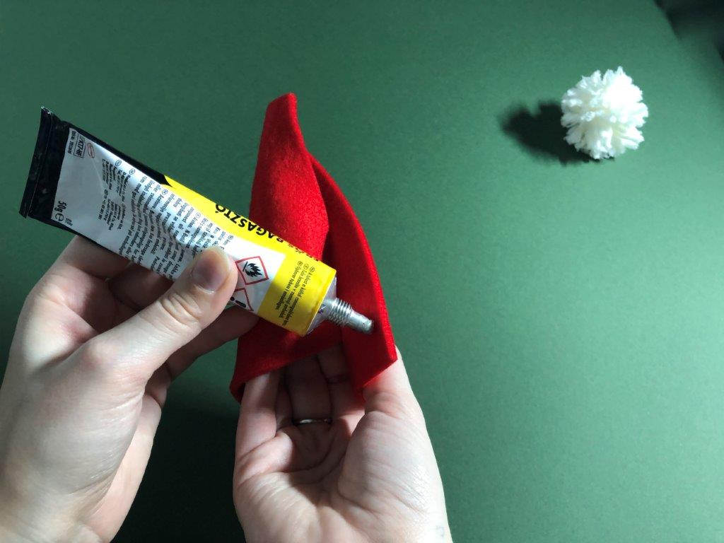 Kapico po želji okrasimo z bleščicami ali kakšnim drugim okraskom. Škratek za smrečico je končan!