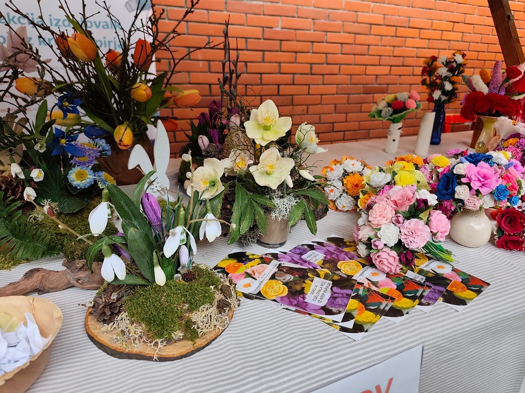 Letos so s ponudbo svojih izdelkov na sejmu sodelovali Medičarstvo Čanč, BOOM ART (Ana Kontič), Metuljnica (Klara Jan), SKORLES (Irena Skornšek), Drevesnica Jelen, Darja Miklavžina z dobrotami s Strževe domačije, Jožica Vidmar z ročno izdelano keramiko in Miran Lepko s pletenimi košarami in lesenimi izdelki. Z rožicami in cvetličnimi aranžmaji se je predstavila tudi naša sekcija izdelovalk rož iz krep papirja, podmladek društva pa je z zbiranjem rim in izdajo 2. Škalske gazete poskrbel za promocijo svojega projekta Noč knjige, ki bo letos posvečena poeziji Srečka Kosovela.