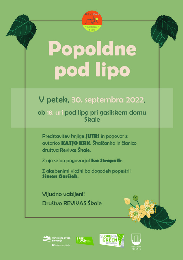 Organizacija dogodkov v domačem kraju - 22. 2 2023: predavanje gos. Miše Pušenjak (proč s škodljivci) - 3. 3. 2023: skupščina društva - 19. 3. 2023: Jožefov sejem in srečanje godovnikov - 31. 3. 2023: velikonočne delavnice - 21.-22. 4. 2023: Noč knjige – projekt podmladka Eko knjiga - 13.5. 2023: družabno srečanje članov društva - 30. 6 in -1. 7. 2023: Škalska pravljica in srečanje preseljenih Škalčanov - 24. 9. 2023: Jesen na vasi - 1. 12. 2023: adventne delavnice
