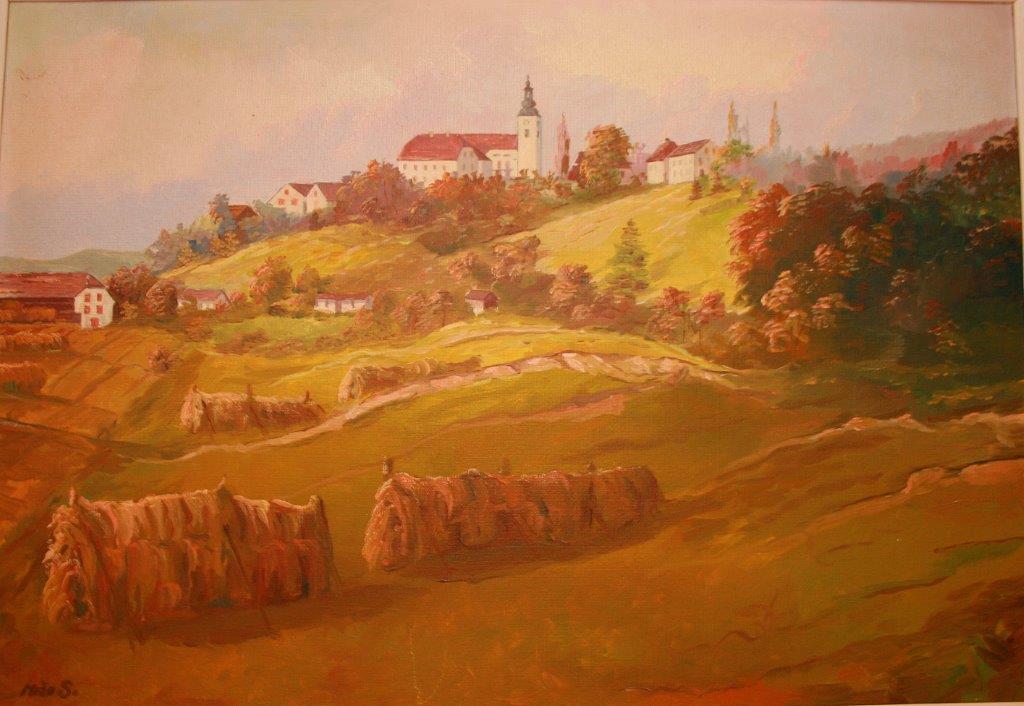 Cerkev svetega Jurija v Škalah, kakor jo je upodobil Mišo Skornšek (foto Tomaž Šumah)
